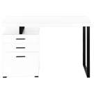 Le bloc-tiroirs est réversible et peut être installé sur le côté gauche ou droit selon votre préférence. Un pied en métal au fini noir avec une forme en U soutient le bureau.