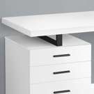 Fini dans le même stratifié blanc que le bureau, le bloc-tiroirs comprend 2 petits tiroirs et 1 grand tiroir avec une barre pour suspendre les dossiers et offre de l'espace pour les articles que vous souhaitez garder hors de la surface de travail.