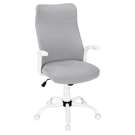 Cette chaise de bureau exécutif avec accoudoirs fixes en blanc travaille dur pour offrir soutien et confort. Le dossier haut ergonomique avec appui-tête est légèrement rembourré, large et courbe pour favoriser une bonne posture, tandis que le siège rembourré est profond et large.