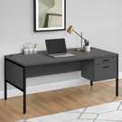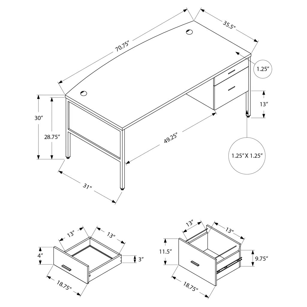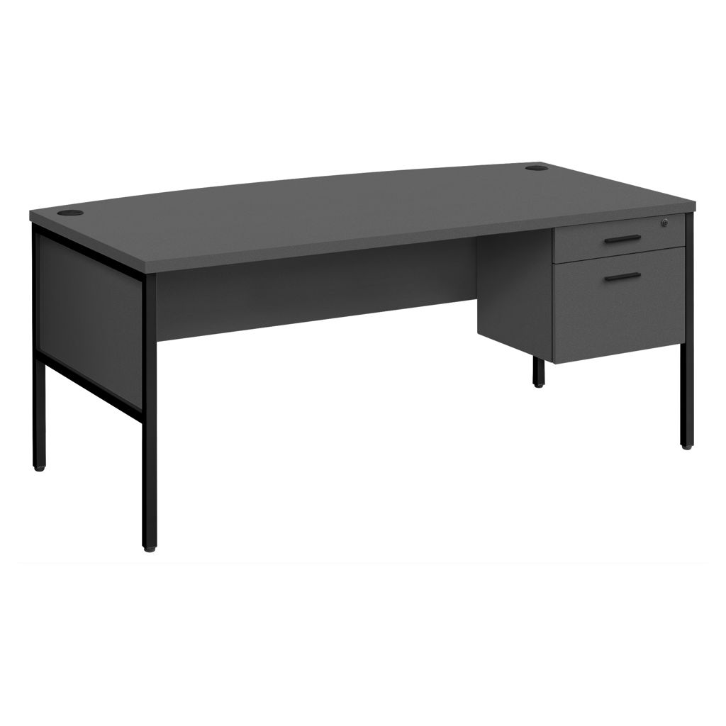 Le plateau incurvé en stratifié gris élégant résiste aux rayures, aux taches et à l'usure, ce qui le rend parfait pour un usage quotidien. Ce bureau de style tendance comprend un tiroir de rangement pour les dossiers de format lettre ou légal et un tiroir supérieur verrouillable qui peut être assemblé à gauche ou à droite, ainsi que des trous de gestion de câbles plafonnés à chaque extrémité du dessus pour un bureau de qualité commerciale hautement fonctionnel.