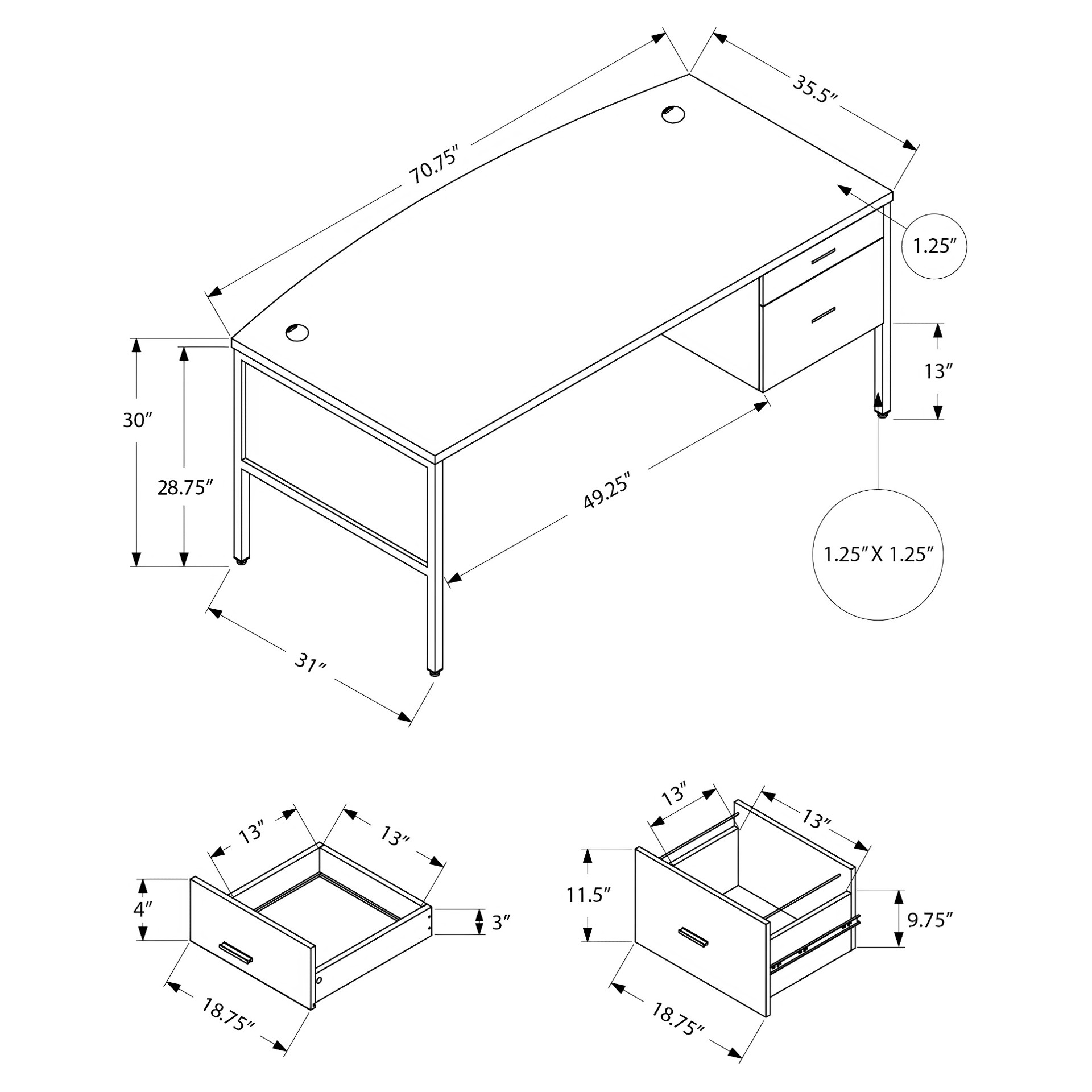 Rehaussez votre bureau à domicile ou votre espace de travail avec ce bureau d'ordinateur élégant et fonctionnel. Mesurant 71 pouces de long, ce bureau contemporain est conçu pour respecter les normes de sécurité de qualité ANSI / BIFMA, garantissant la durabilité et la sécurité pour tous vos besoins de travail.