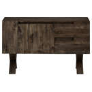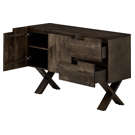 Doté de deux portes et de deux tiroirs spacieux, il offre un rangement optimal pour votre vaisselle, linge de table et accessoires culinaires. Ses pieds croisés en X confèrent une stabilité remarquable tout en créant un effet visuel saisissant.