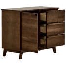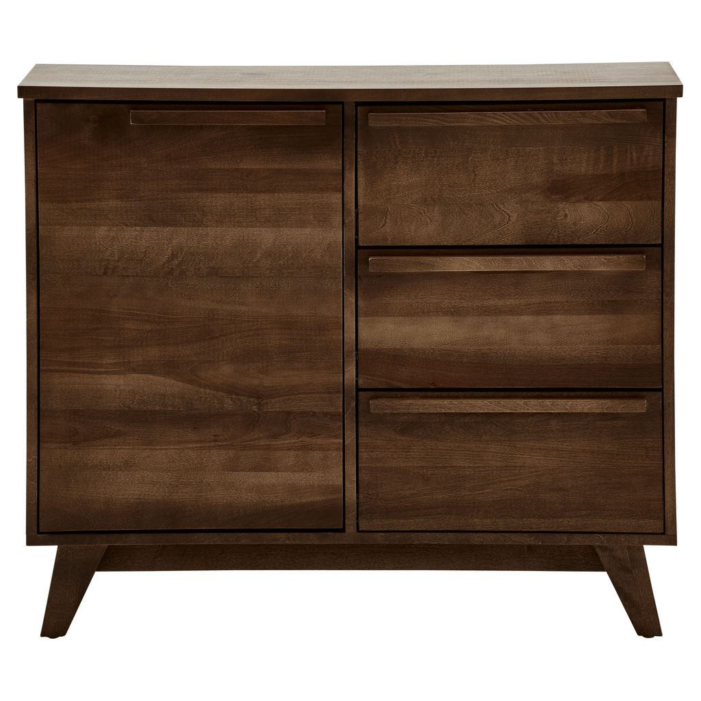 Ce buffet de cuisine allie fonctionnalité et élégance avec sa finition en bois chaleureux qui apportera du caractère à votre intérieur. Sa conception intelligente offre de multiples solutions de rangement : une porte battante spacieuse et trois tiroirs coulissants pour organiser facilement votre vaisselle, linge de table et accessoires culinaires.
