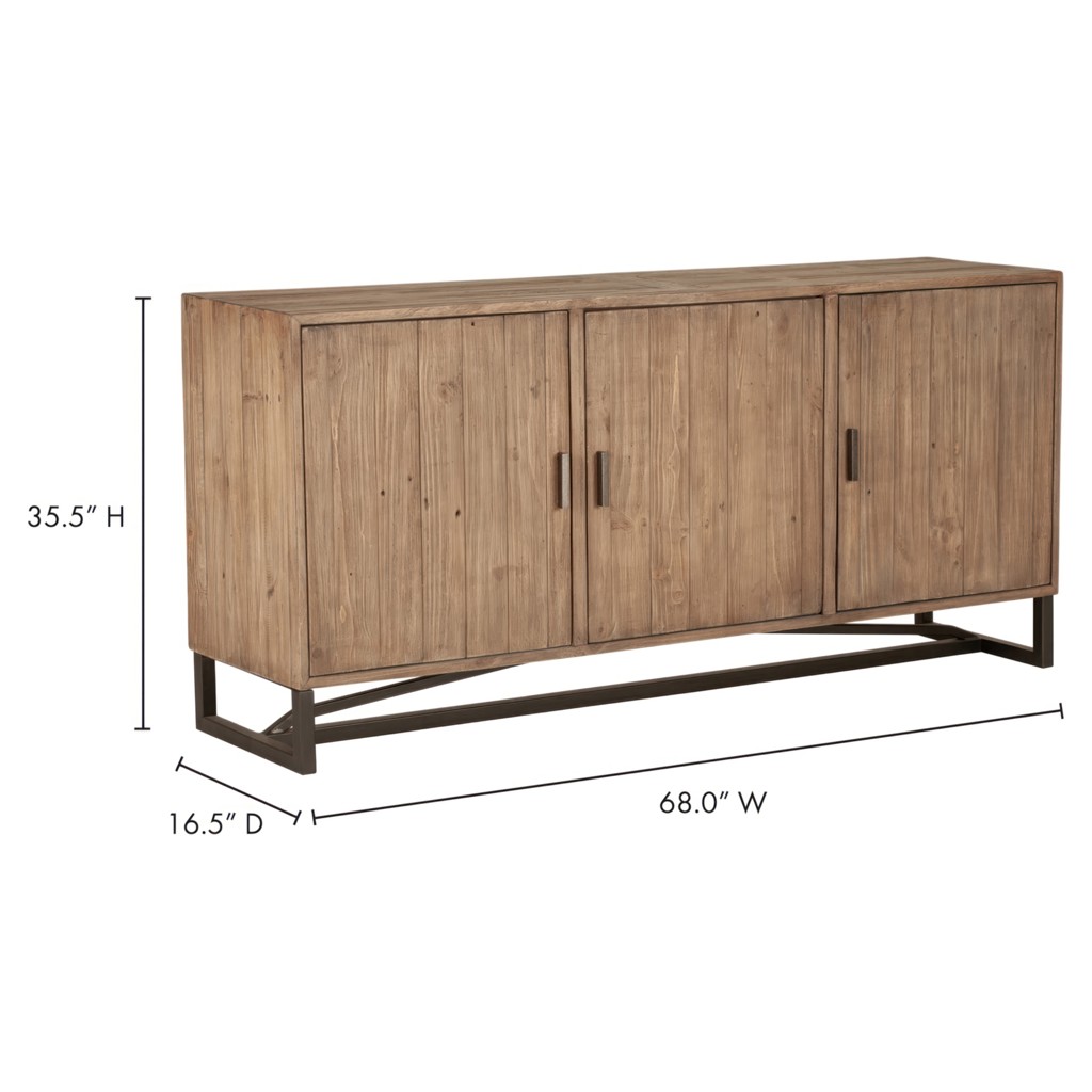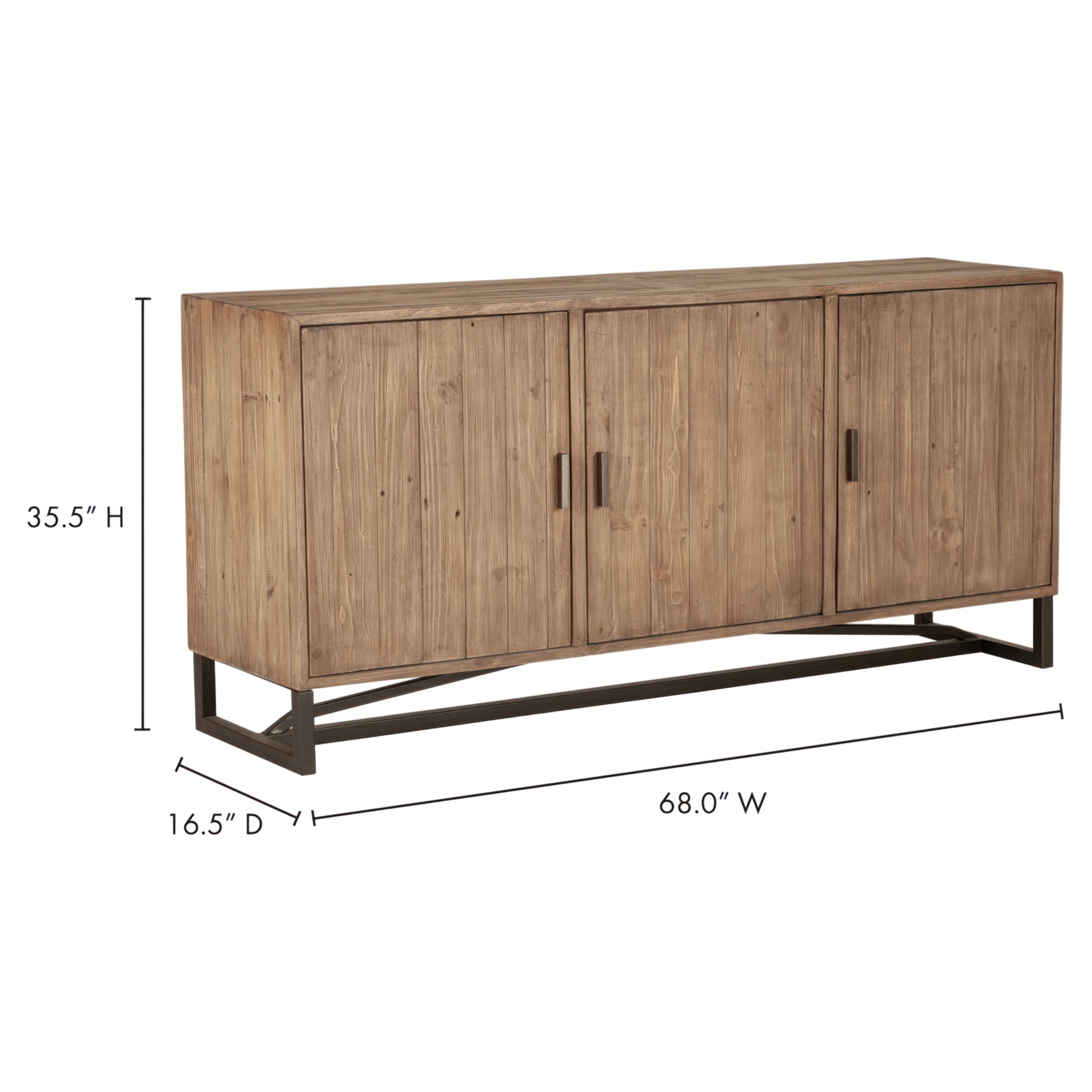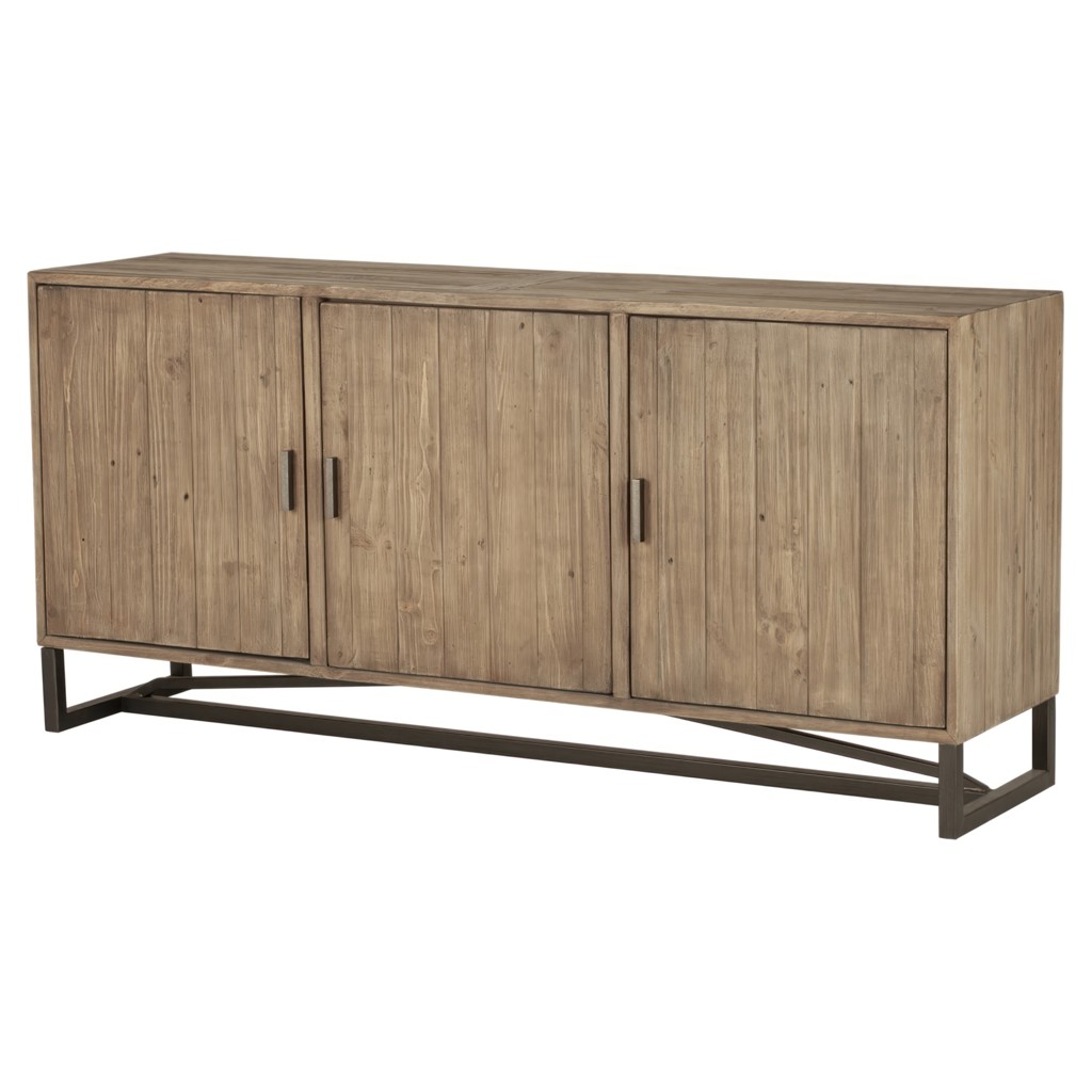 Fabriqué avec du pin récupéré solide, le buffet de la Sierra présente des variances de grain de bois naturel et de noeuds. Ses six étagères offrent suffisamment d'espace pour stocker vos éléments essentiels du dîner et plus encore. Une base en métal solide donne à ce buffet sa conception de transition.