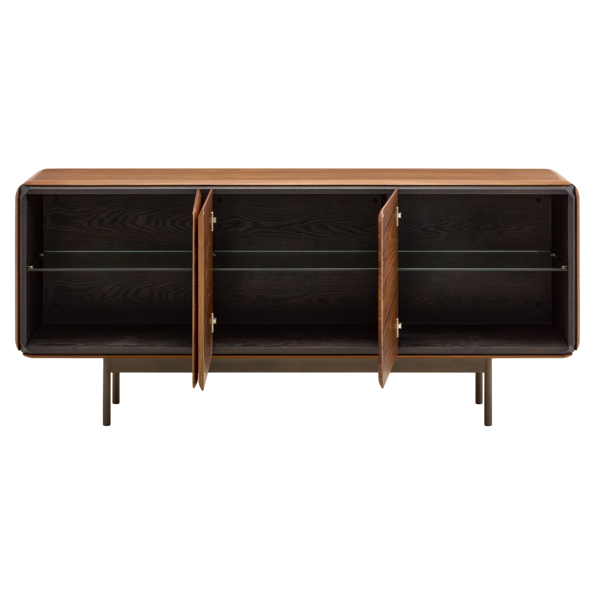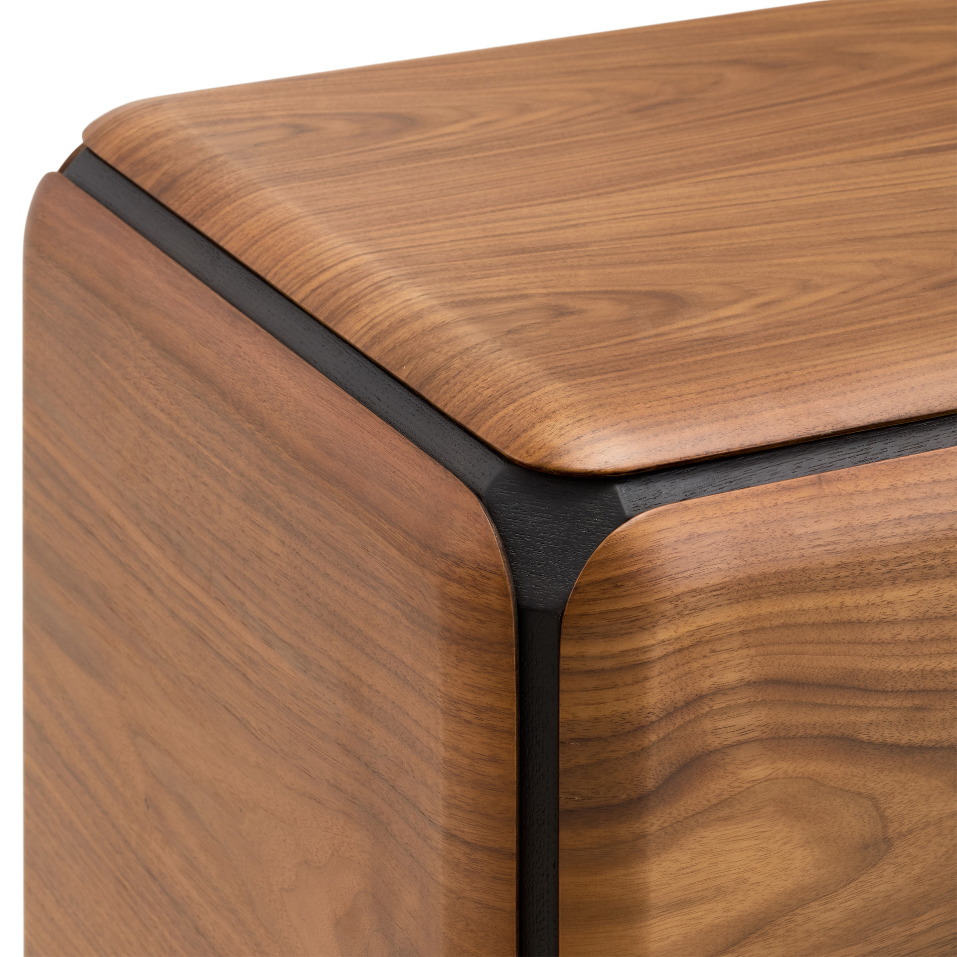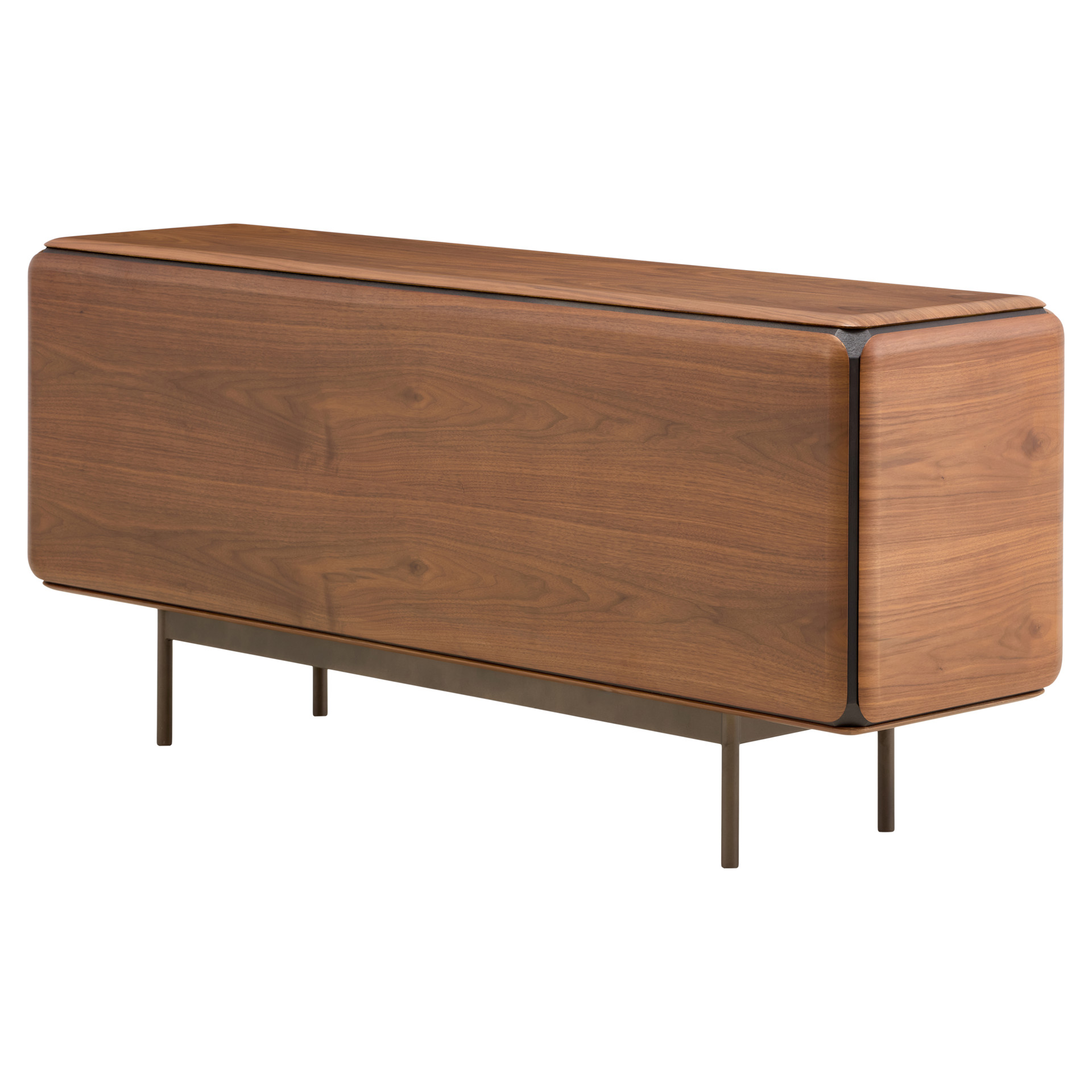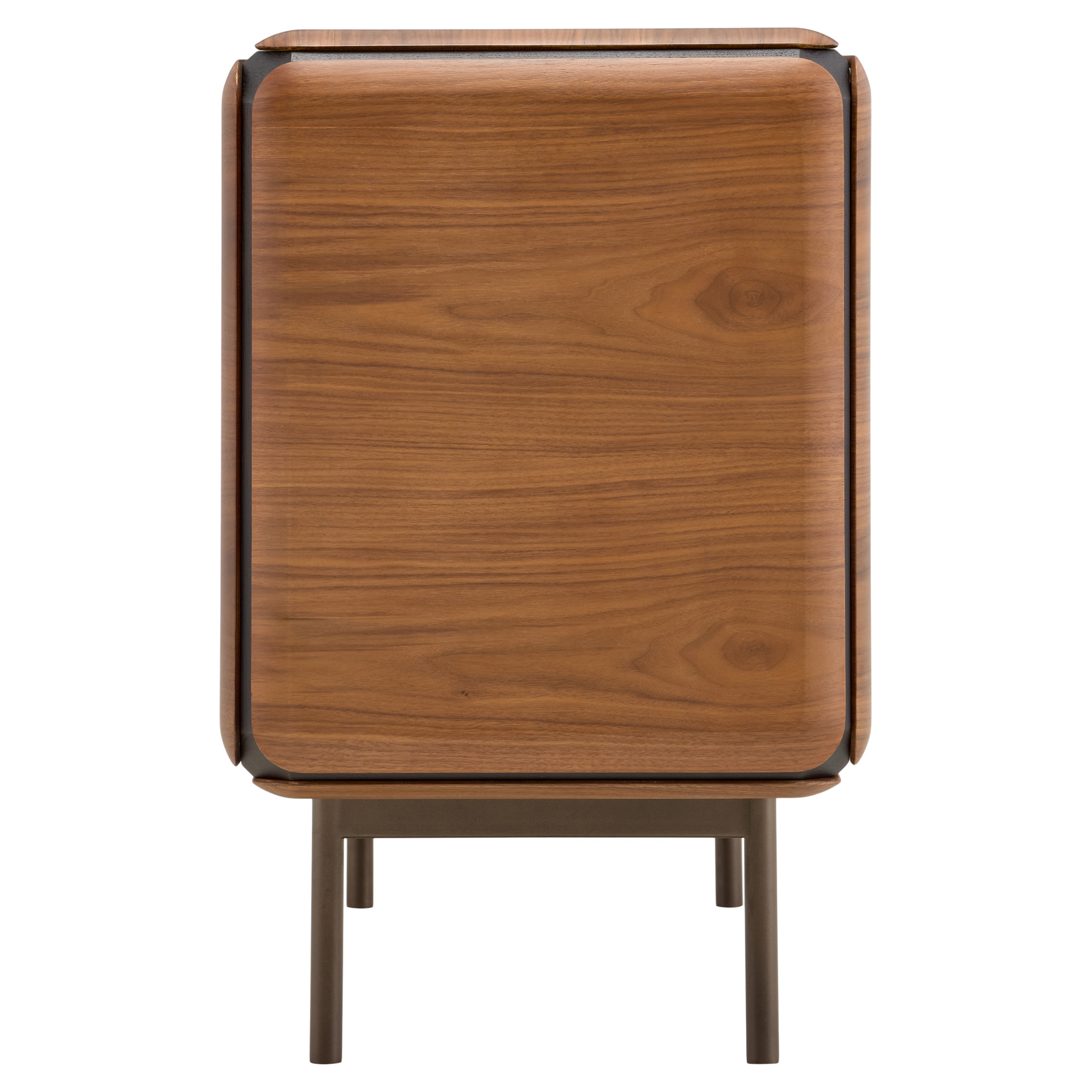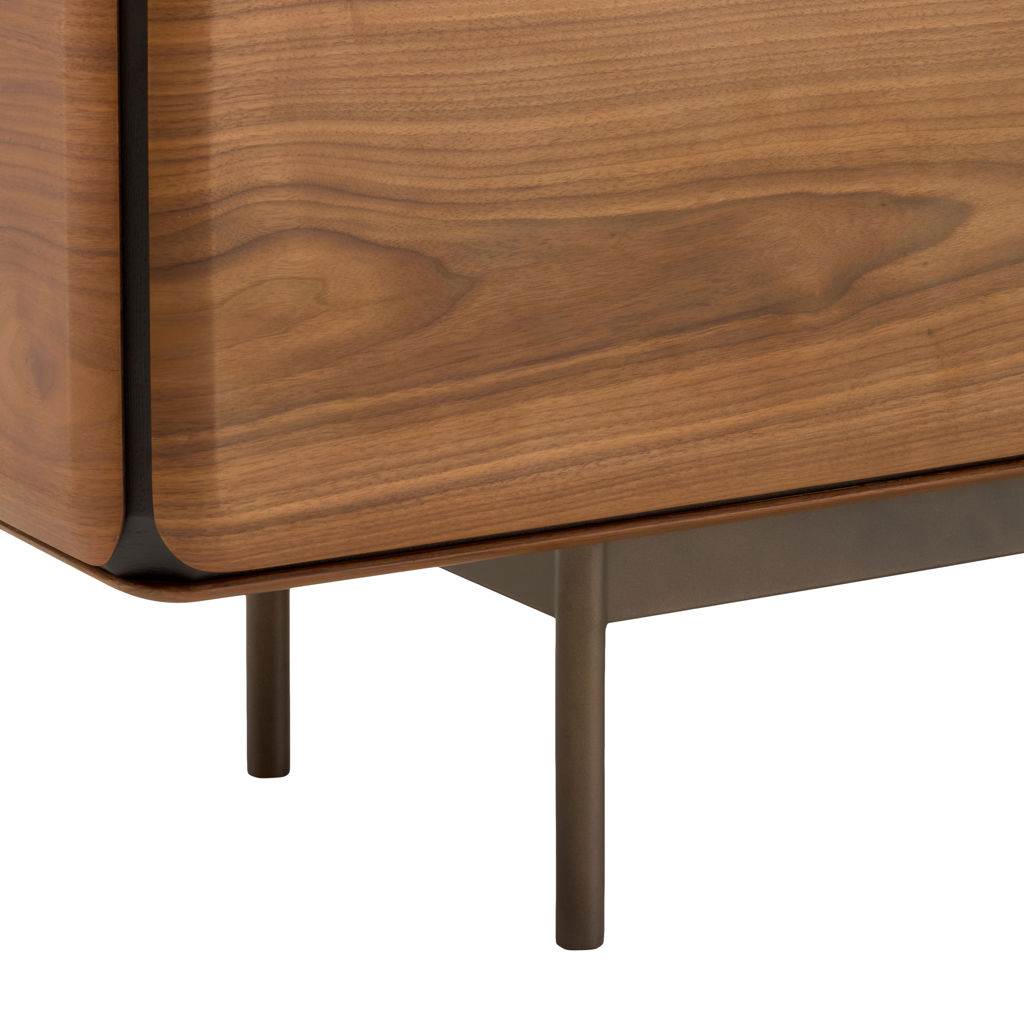 Son style mid-century moderne s'intègre parfaitement dans tous les intérieurs, du plus classique au plus contemporain. La chaleur du noyer et l'élégance du bronze créent un contraste harmonieux qui ne manquera pas d'attirer les regards.