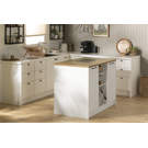 DÉTAILS FARMHOUSE : orné de vos plus beaux livres de recettes, cet îlot de cuisine aux poignées droites en métal et aux charmantes moulures saura s´agencer avec votre décor rustique moderne.