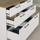 Monté sur des coulisses pleine extension en métal, chaque tiroir possède un ralentisseur à la fermeture pour une expérience tout en douceur.
