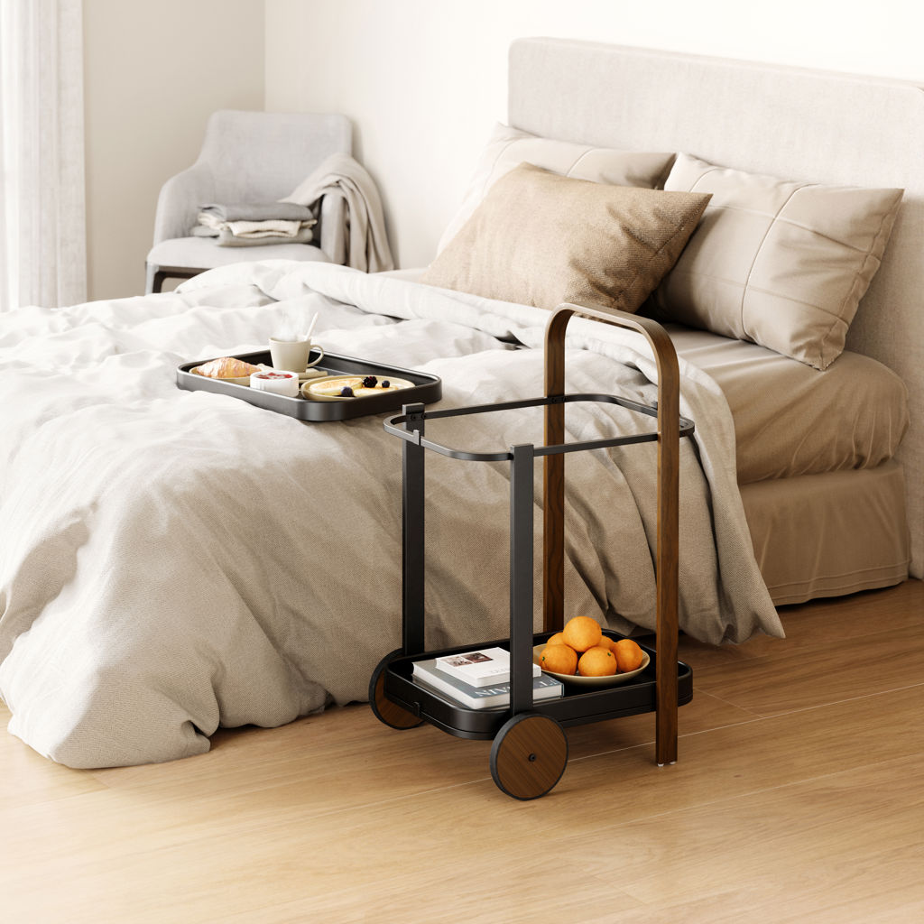 Avec des roues à rebord en caoutchouc, vous pouvez facilement le déplacer ou retirer un plateau pour le servir en déplacement ou le nettoyer.
