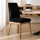 Les chaises en tissu noir assorties combinent confort et sophistication. Dotées de pieds en merisier, elles s'intègrent parfaitement à l'ensemble. Le tissu doux garantit une assise agréable lors de vos repas, tandis que son teinte profonde crée une atmosphère intemporelle.