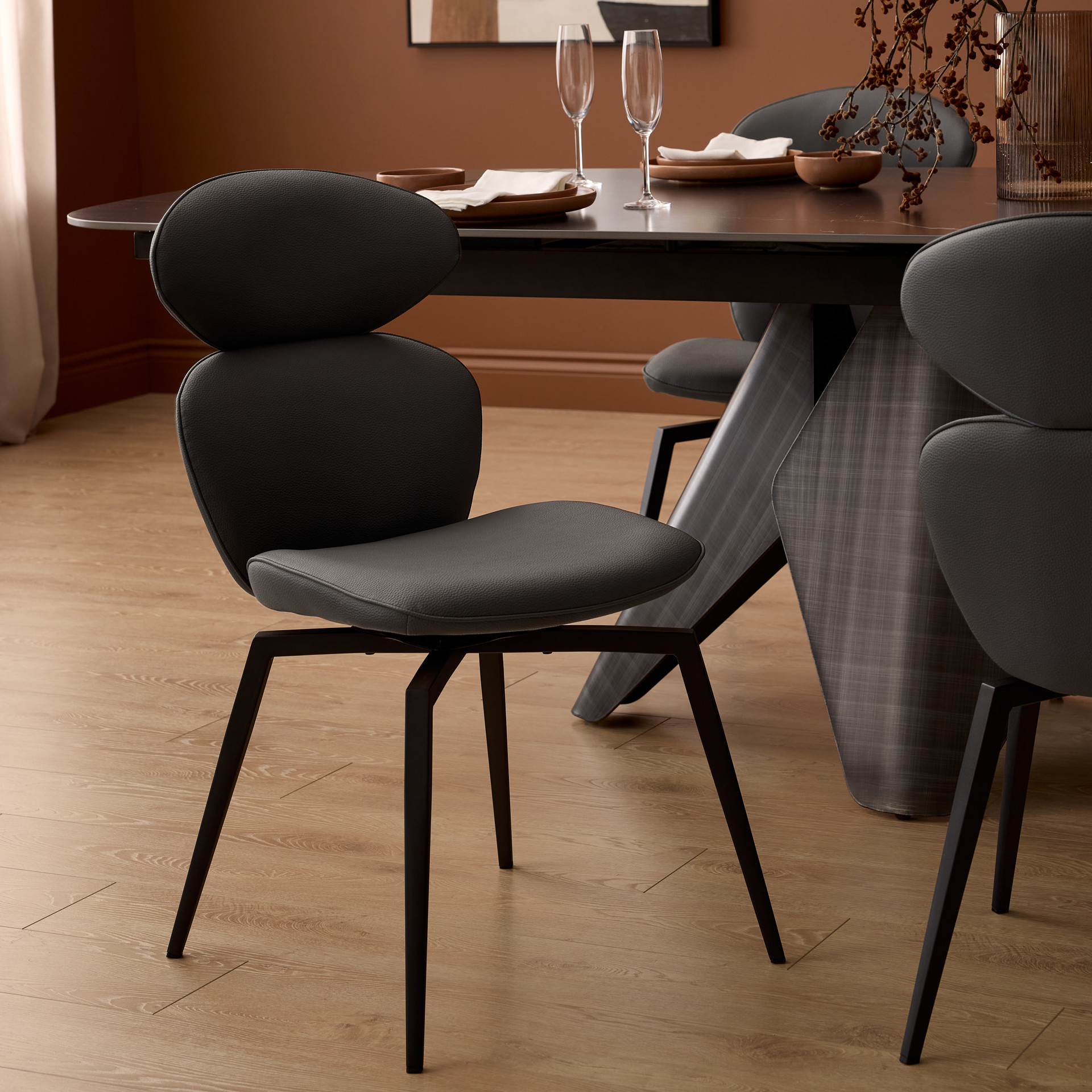Ensemble harmonieux, le duo Taji et Antler allie matériaux haut de gamme et design épuré pour offrir un espace repas à la fois contemporain, fonctionnel et chaleureux.