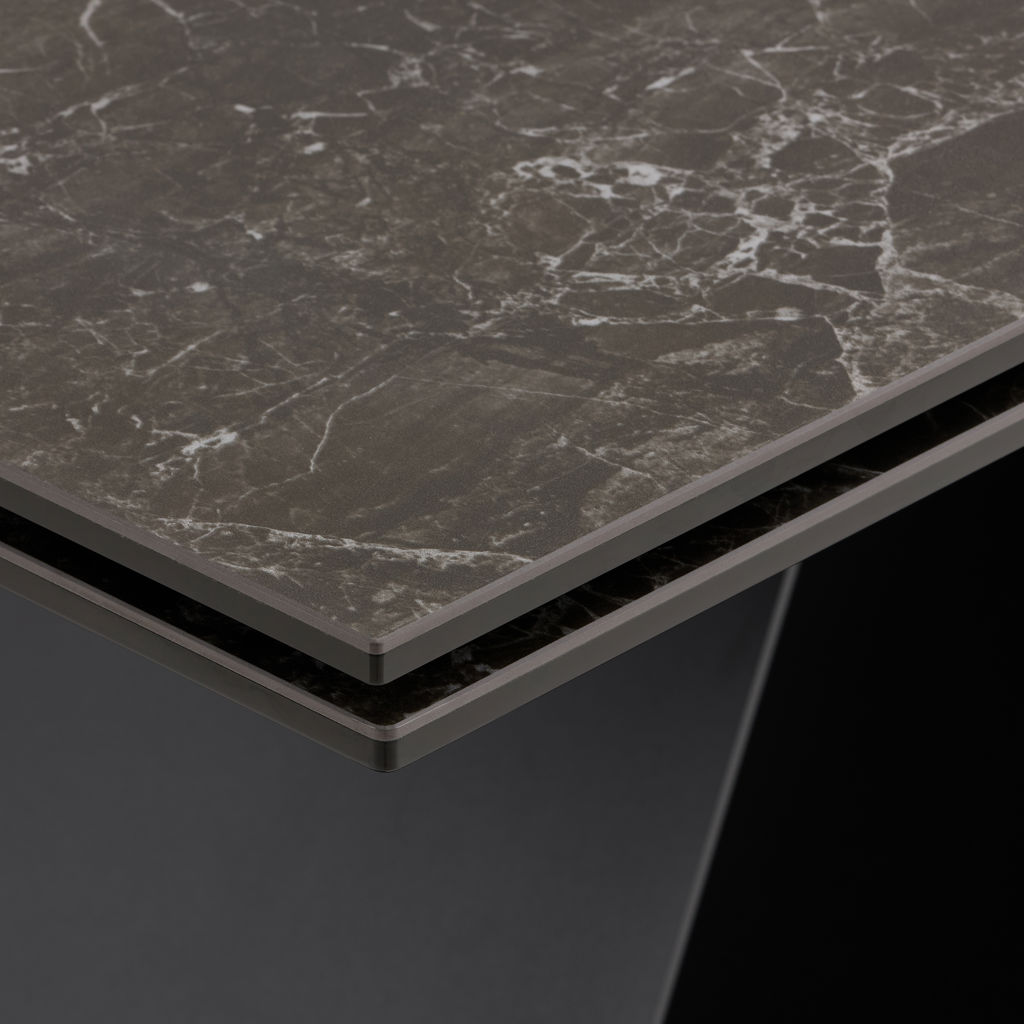 - Plateau en céramique italienne laminée sur verre, effet marbre noir