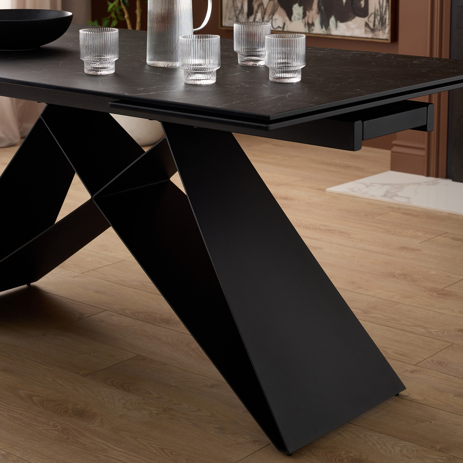 Son plateau en céramique italienne, inspiré du marbre Nero Marquina, séduit par sa texture mate et son allure sophistiquée.