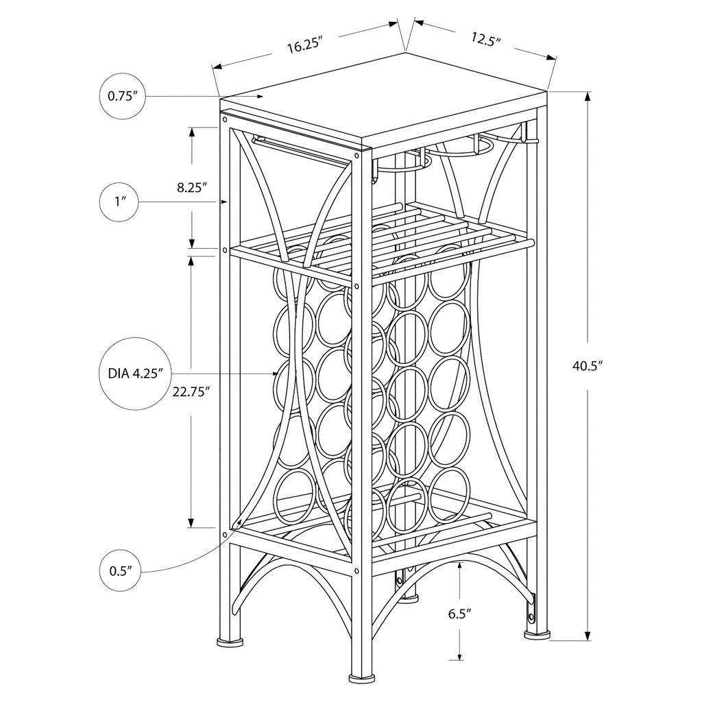 Construit avec un métal de grande qualité, ce support à vin peut accomoder 15 bouteilles et vous offre du rangement pour vos verres.