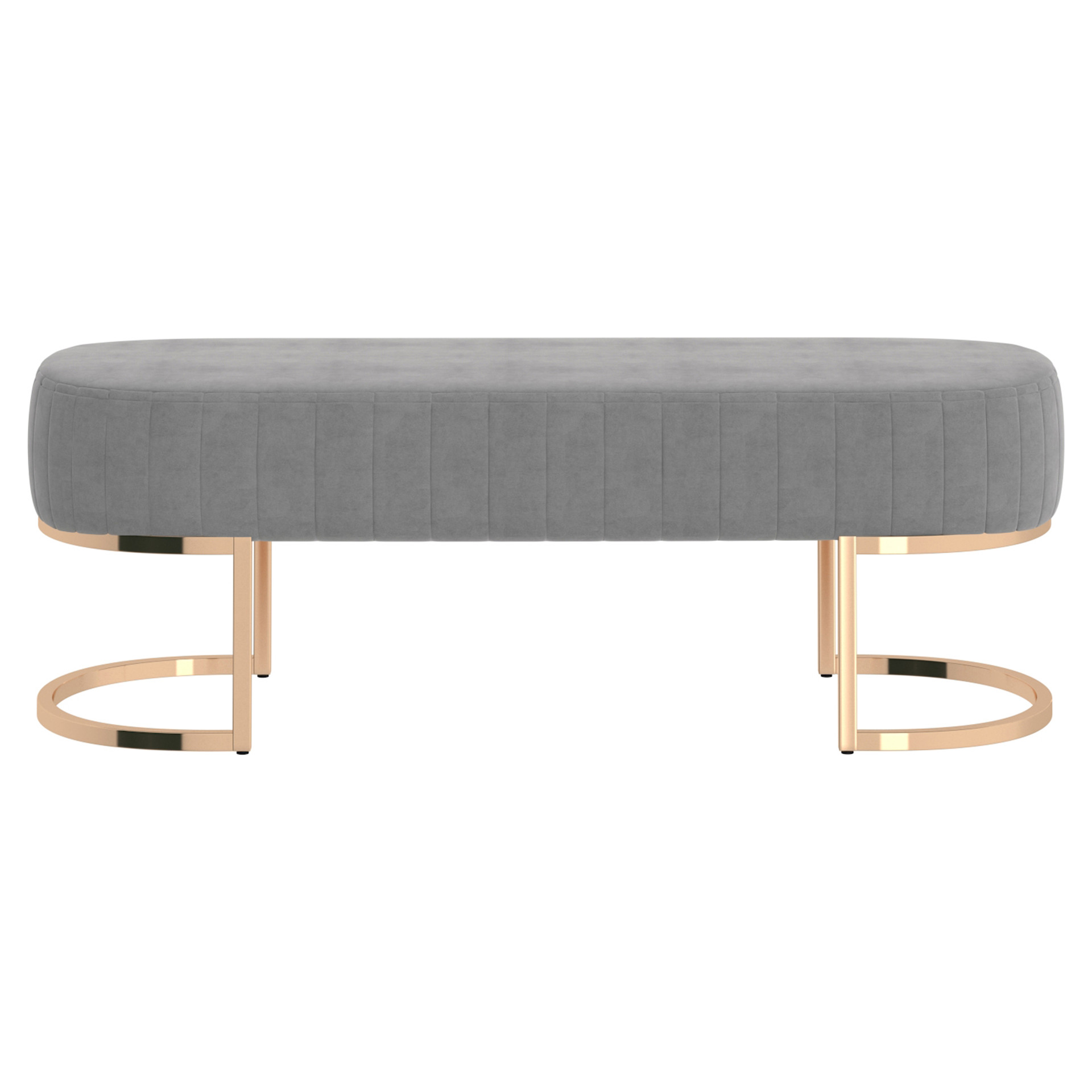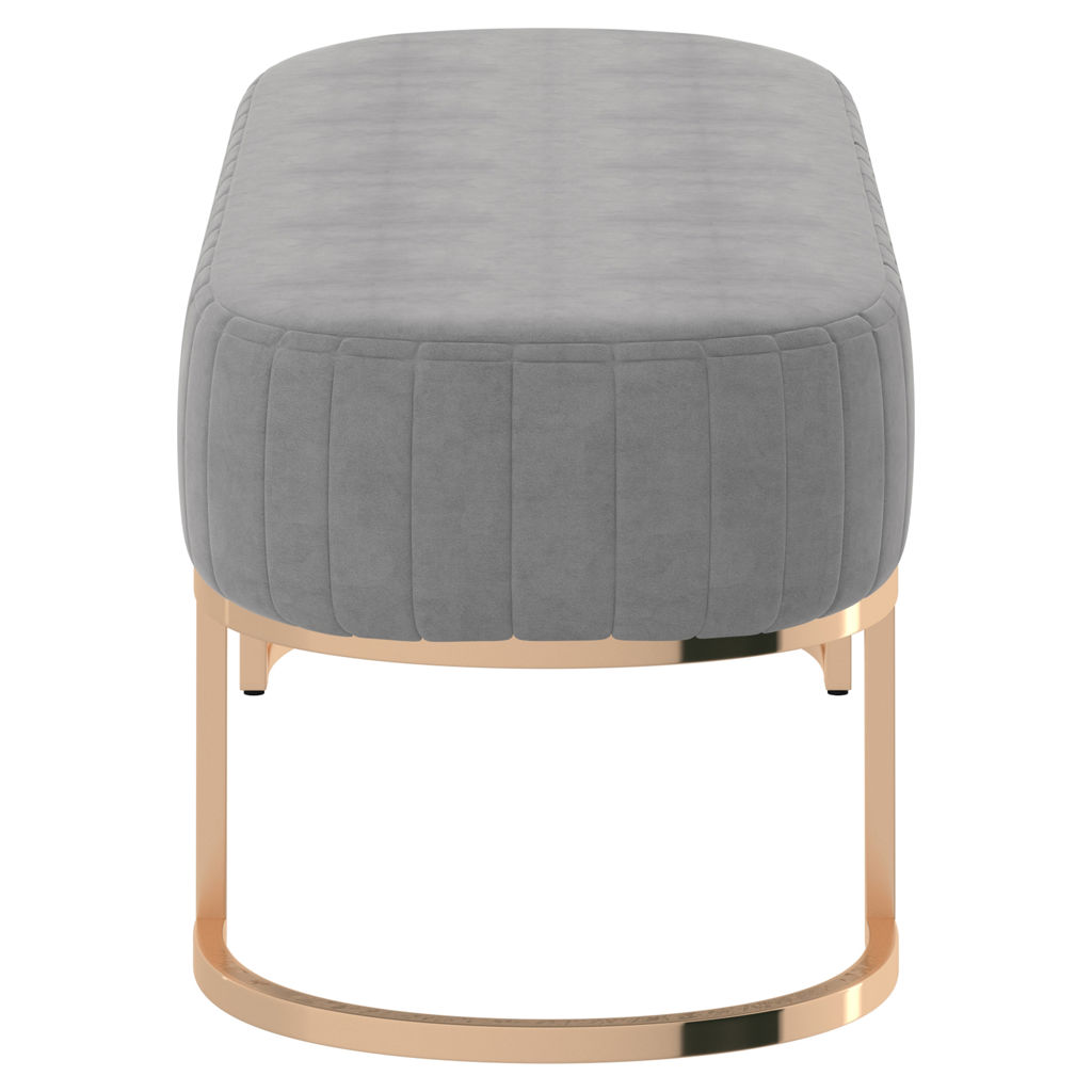 Le joli revêtement de velours avec un capitonnage vertical sur les côtés donne à ce banc contemporain un look chaleureux.