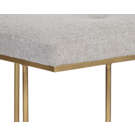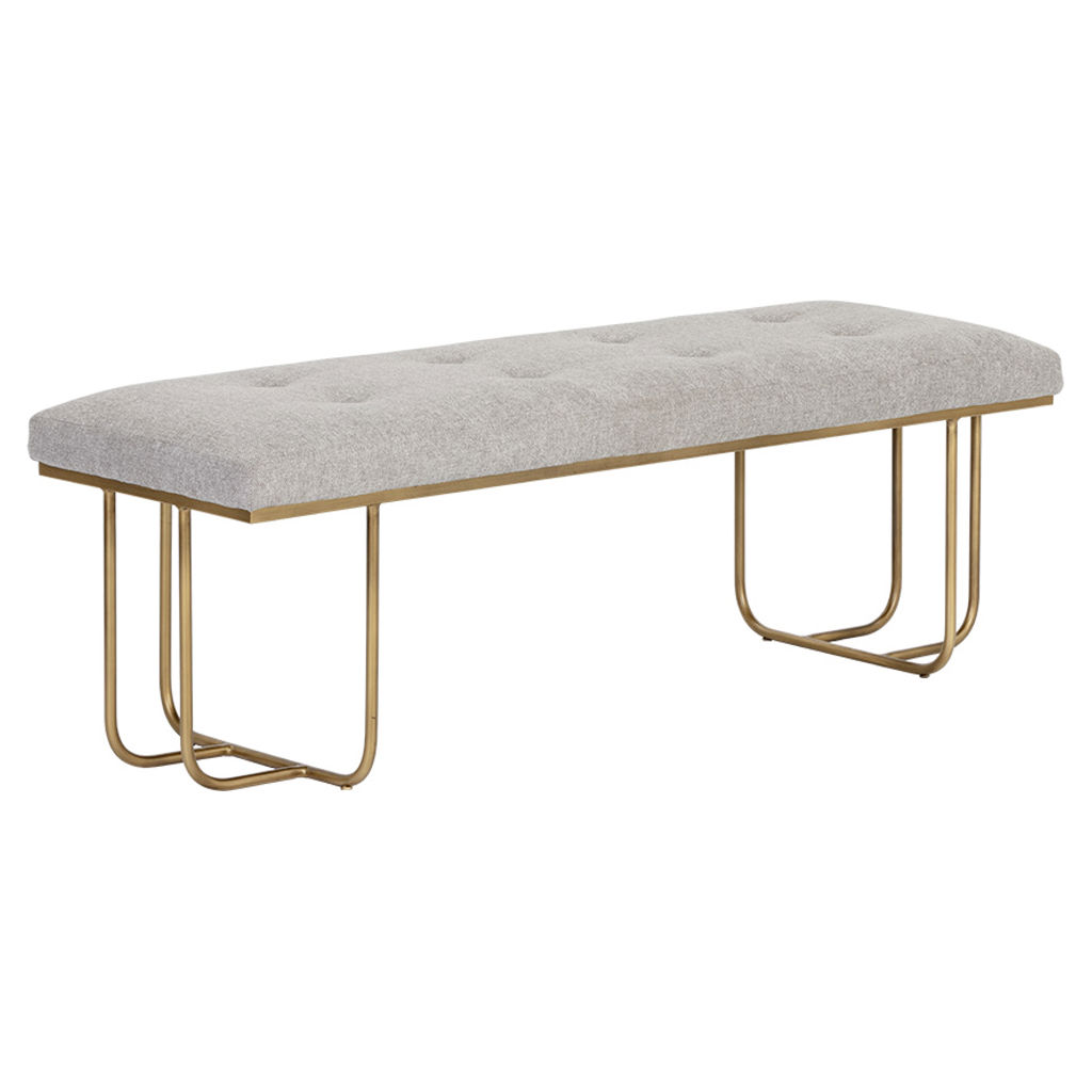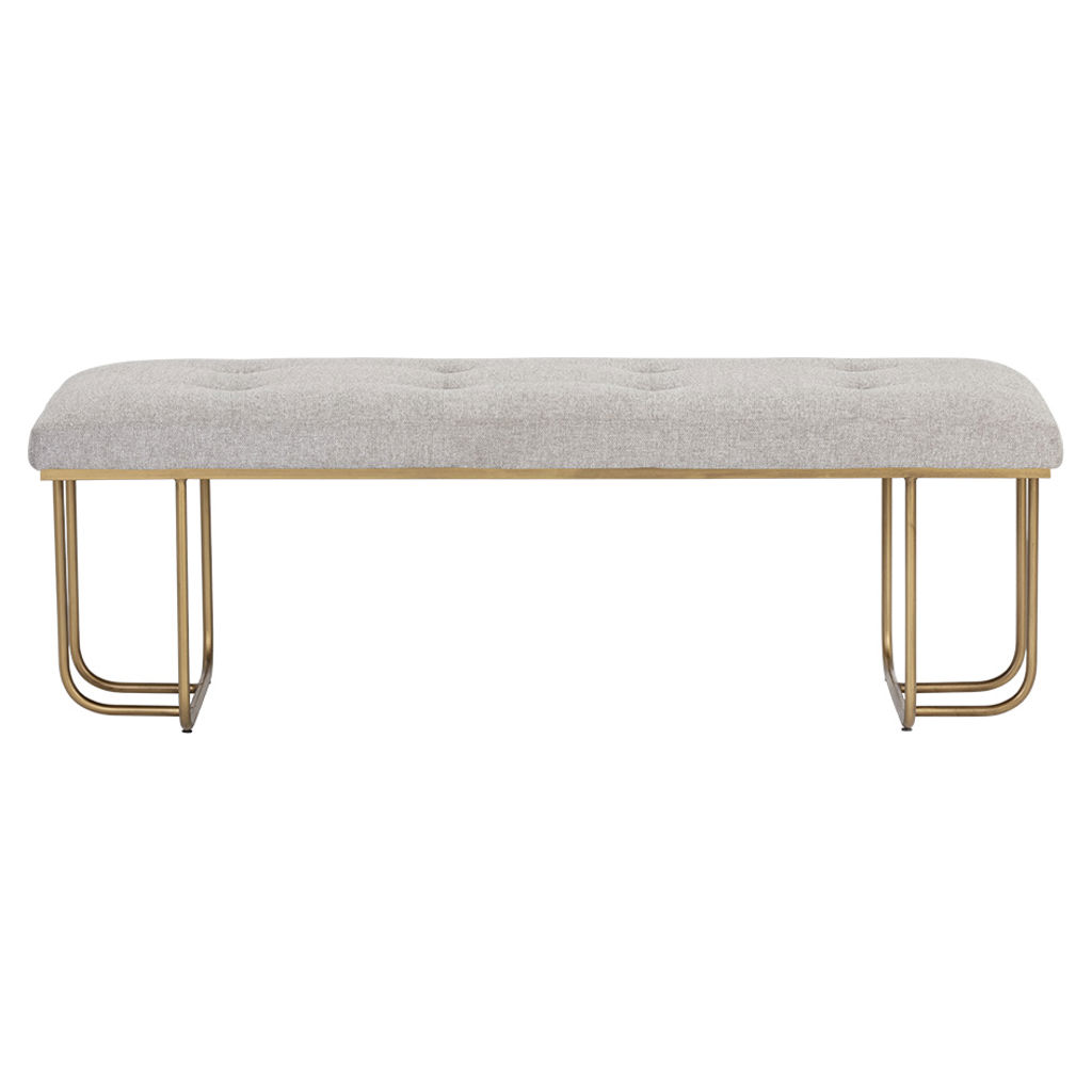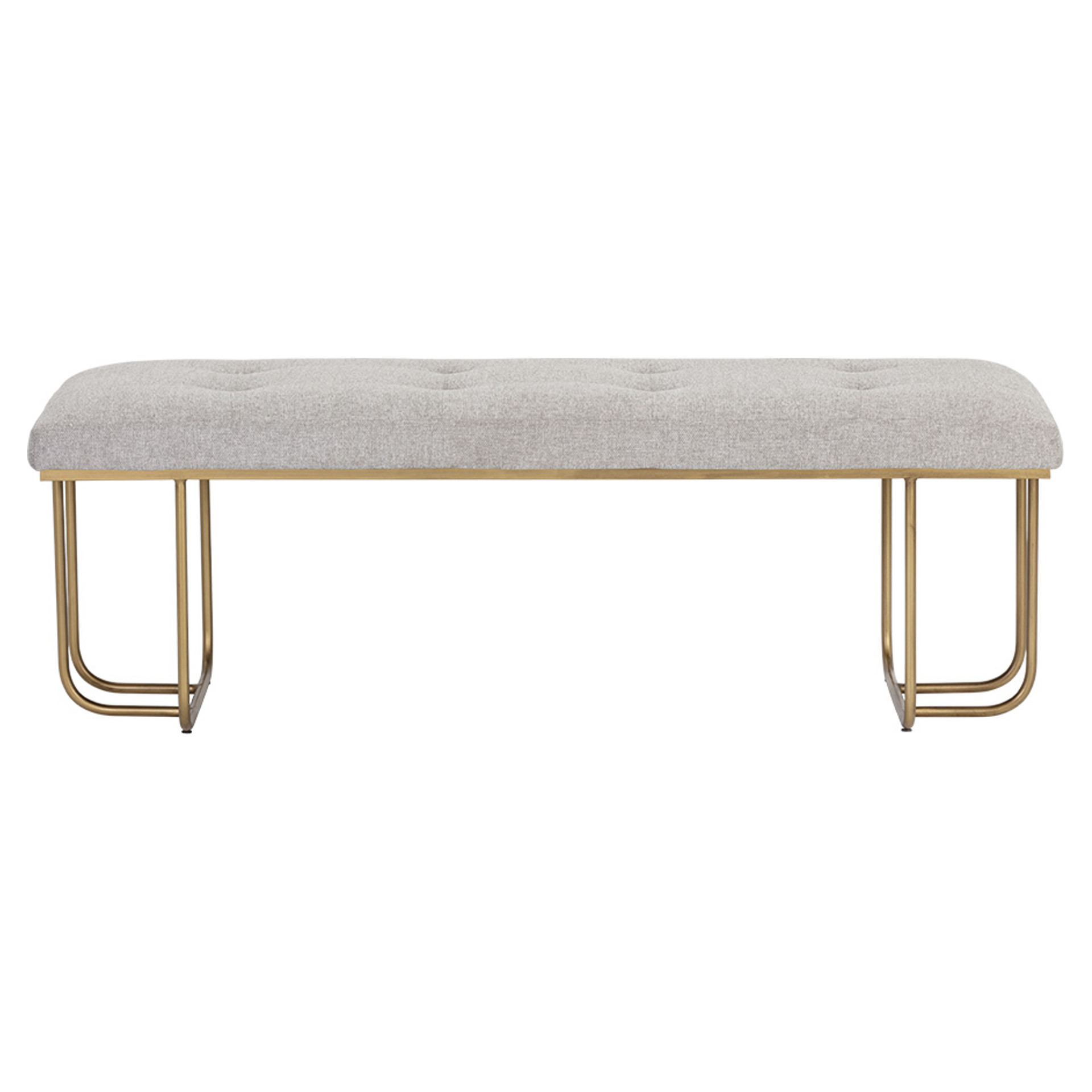 Ce banc en tissu avec des pattes de métal est parfait pour compléter votre mobilier.