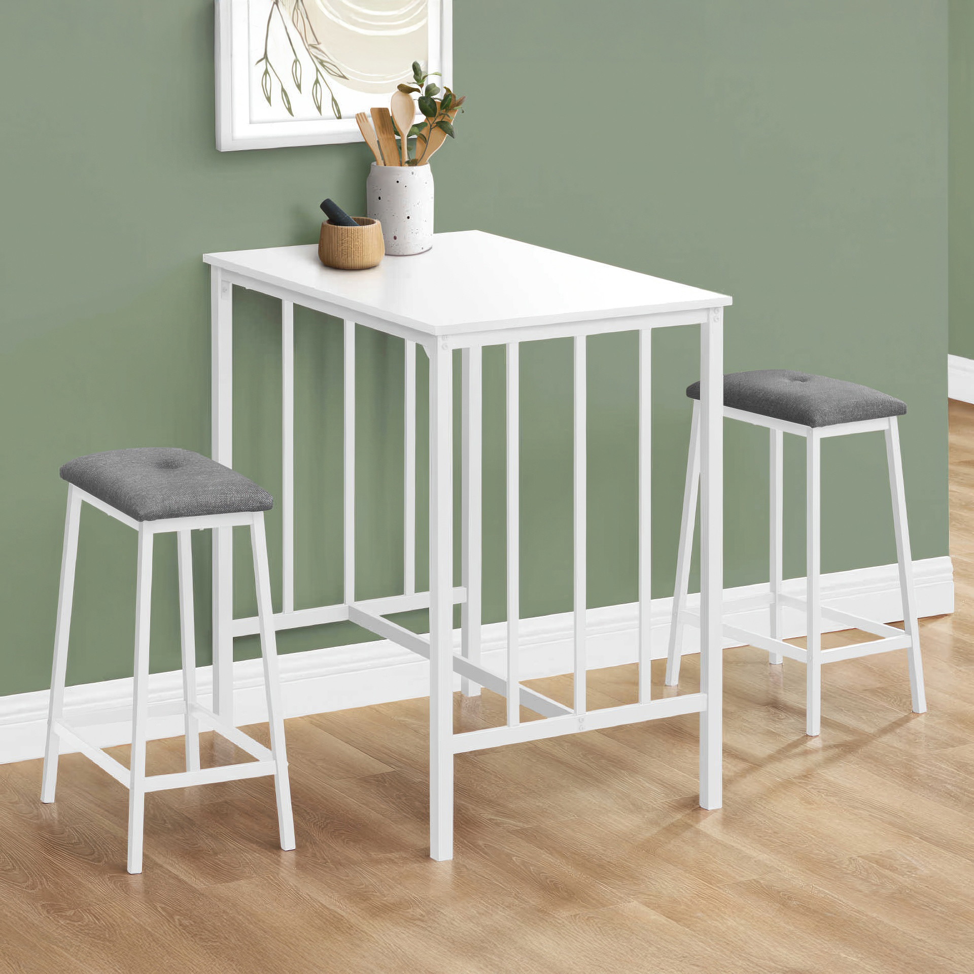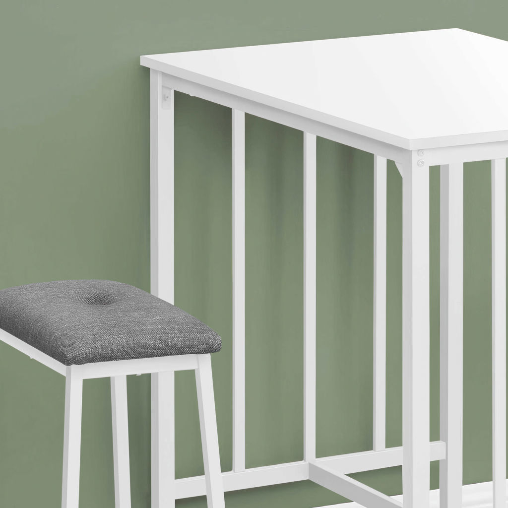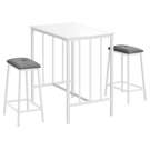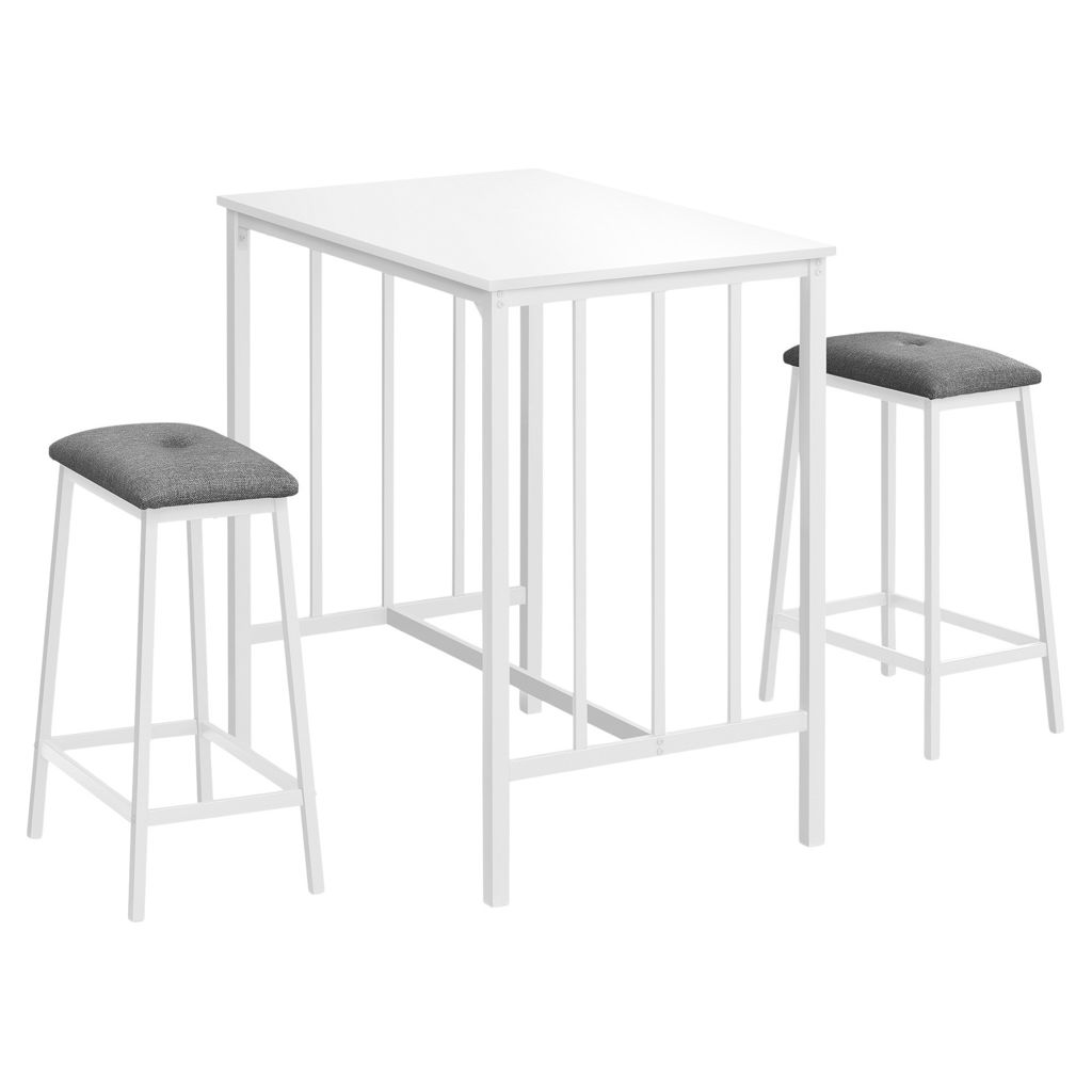 Les sièges rembourrés en tissu gris offrent un confort optimal, tandis que la construction robuste garantit la durabilité pour les années à venir. Parfait pour les petits espaces, cet ensemble de 3 pièces est facile à assembler grâce aux instructions illustrées incluses.