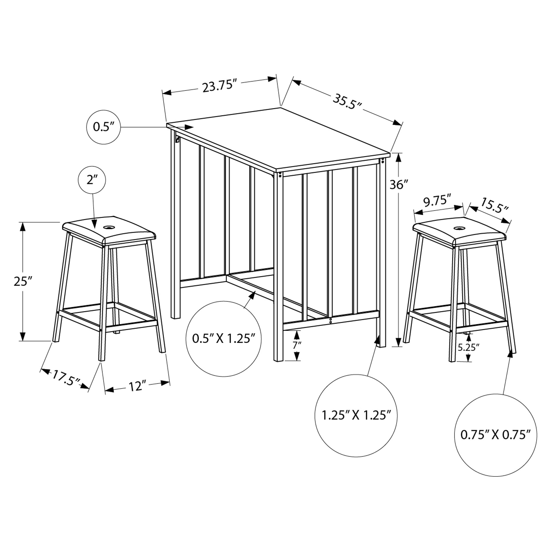 Ensemble de salle à manger style bistro 3 pièces Monarch Specialties I 1147