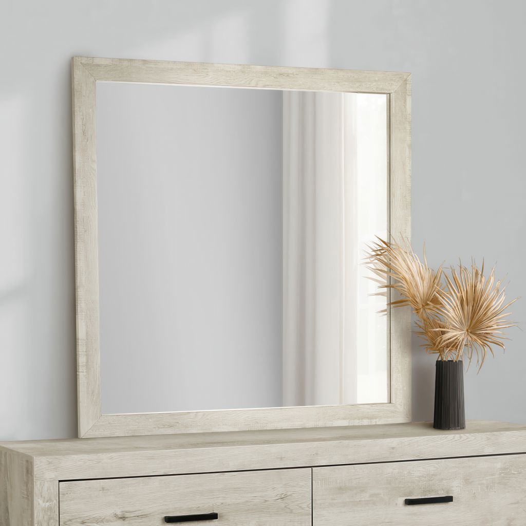 Ce miroir mural contemporain ne se contente pas d'agrandir visuellement l'espace de votre chambre, il ajoute également un élément pratique. Le miroir peut également être fixé directement sur la commode assortie (vendue séparément) grâce aux lattes de fixation incluses pour un montage sans effort.