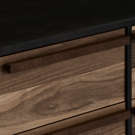 Sa structure robuste en métal noir contraste harmonieusement avec la chaleur du bois veiné, créant une pièce maîtresse qui s'intègre à tous les décors.