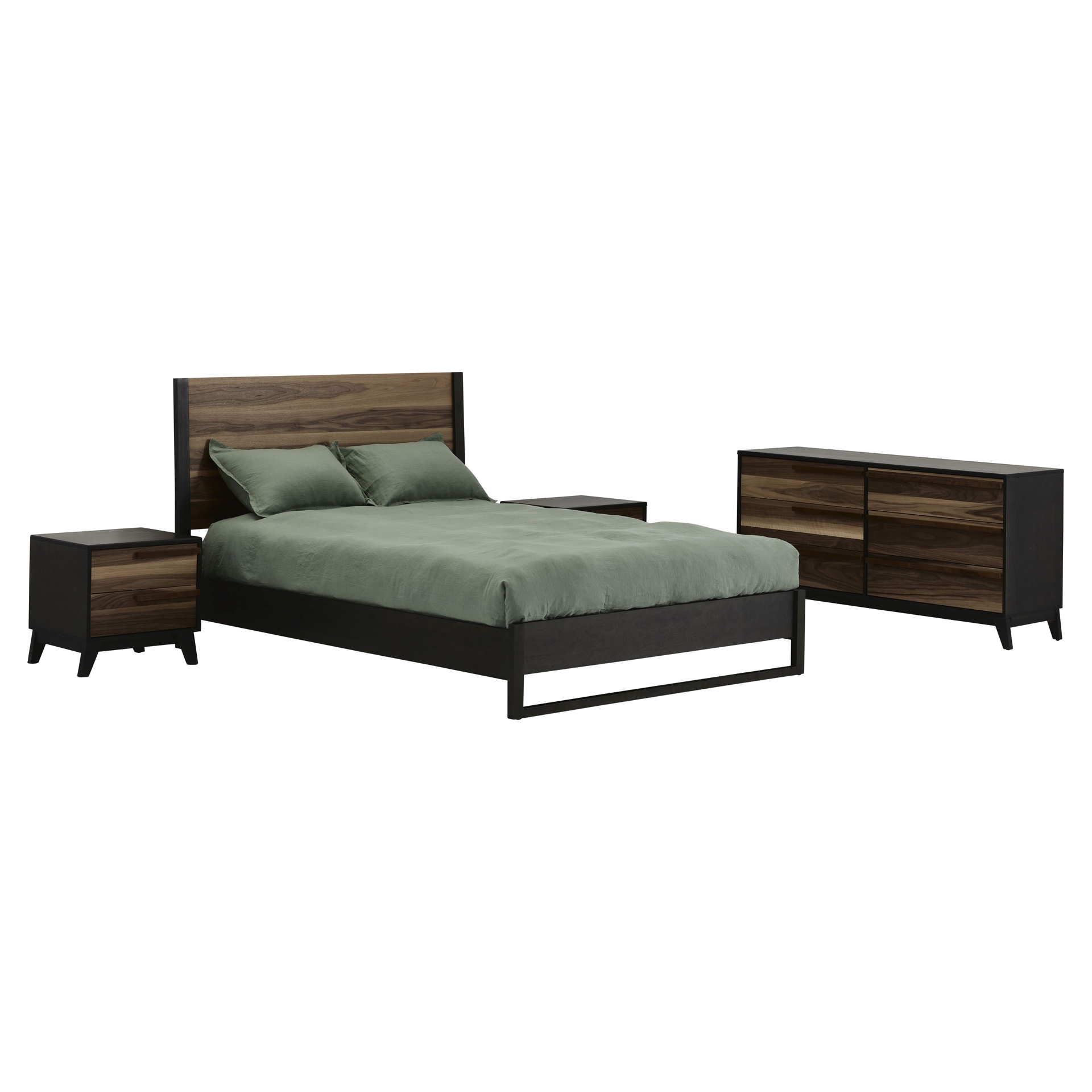 Alliant design moderne et finitions en bois chaleureux, cette collection complète comprend un lit confortable, deux tables de chevet pratiques et un bureau double spacieux.