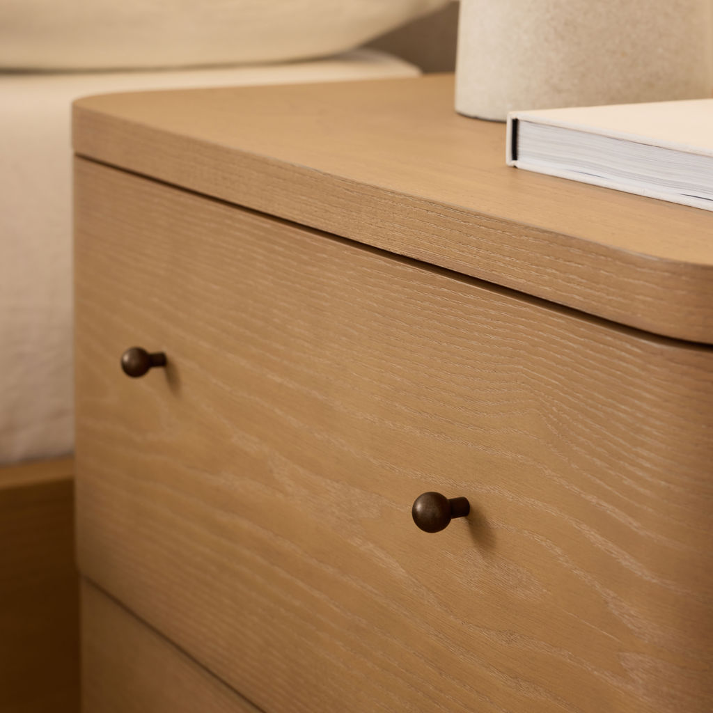 • Les faces de tiroirs gracieusement incurvées créent un aspect doux et serein