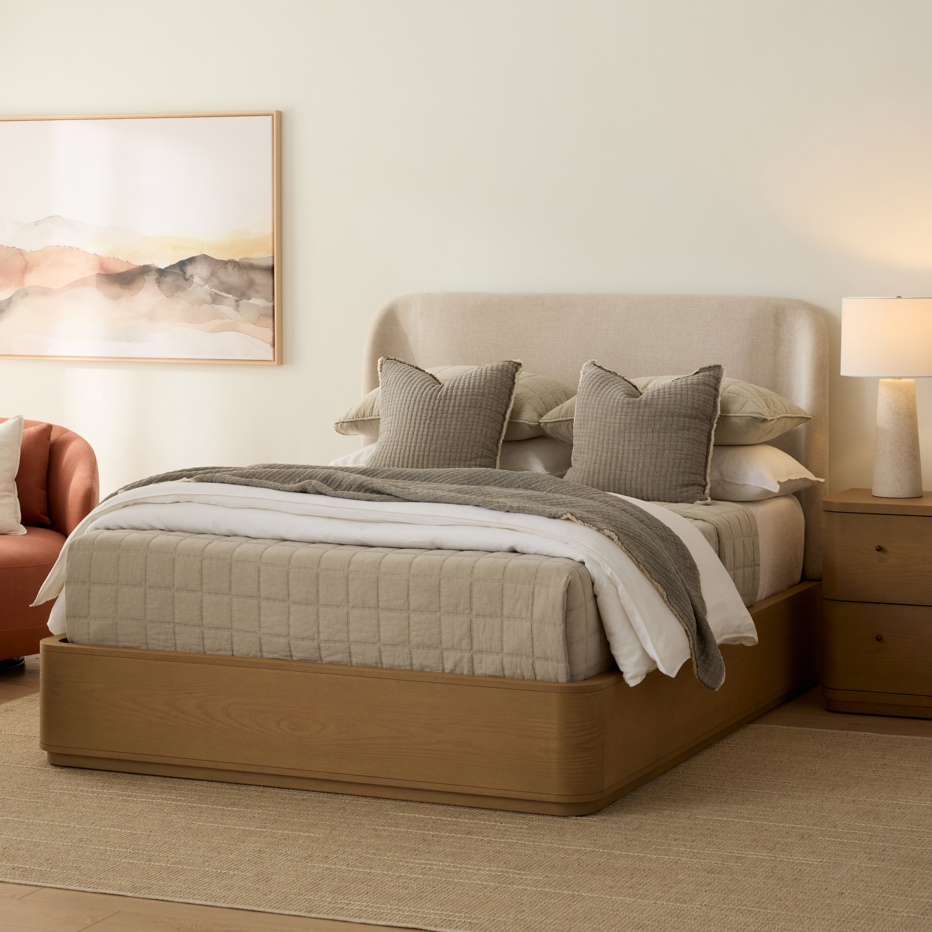 La base de lit en bois naturel aux lignes épurées apporte cette touche scandinave intemporelle qui sublime votre chambre. Robuste et élégant, il crée cette ambiance apaisante essentielle à un sommeil réparateur. La tête de lit rembourrée en beige doux vous enveloppe d'un confort exceptionnel, parfait pour vos moments lecture ou détente.