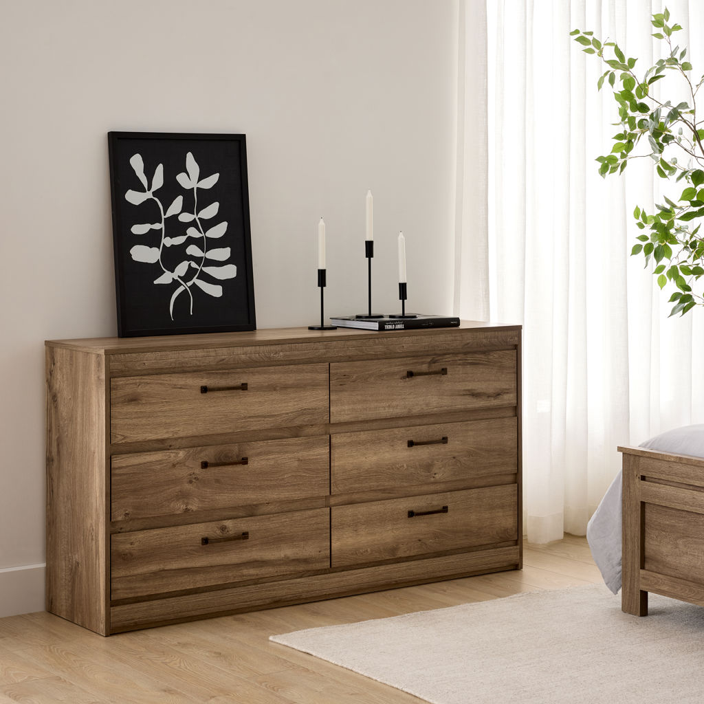 • Commode double 6 tiroirs : 17 1/2 X 34 3/4 X 65 1/4