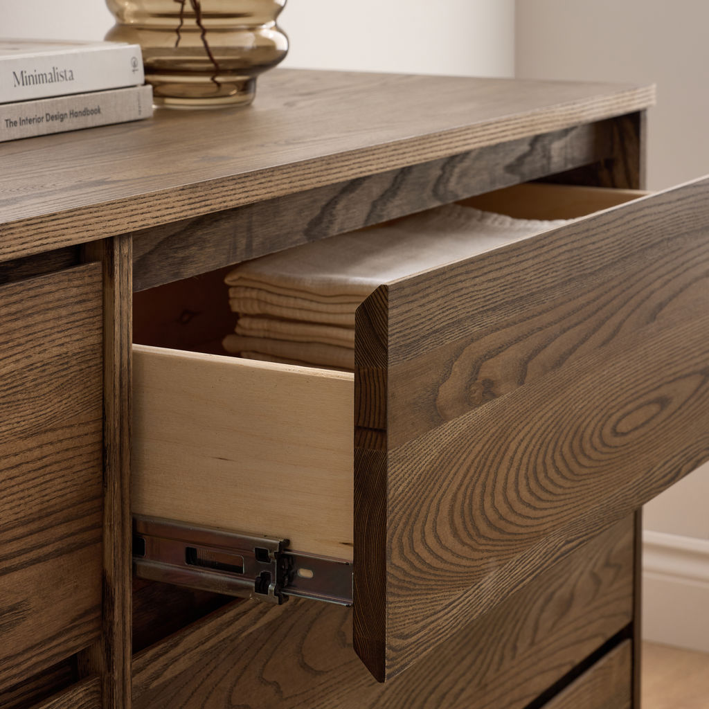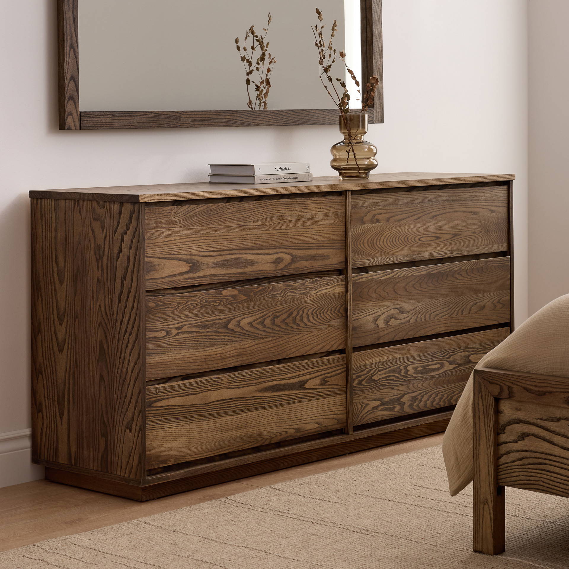 Ajoutez une touche de chaleur naturelle et une grande capacité de rangement à votre chambre avec cette commode double en bois de frêne.