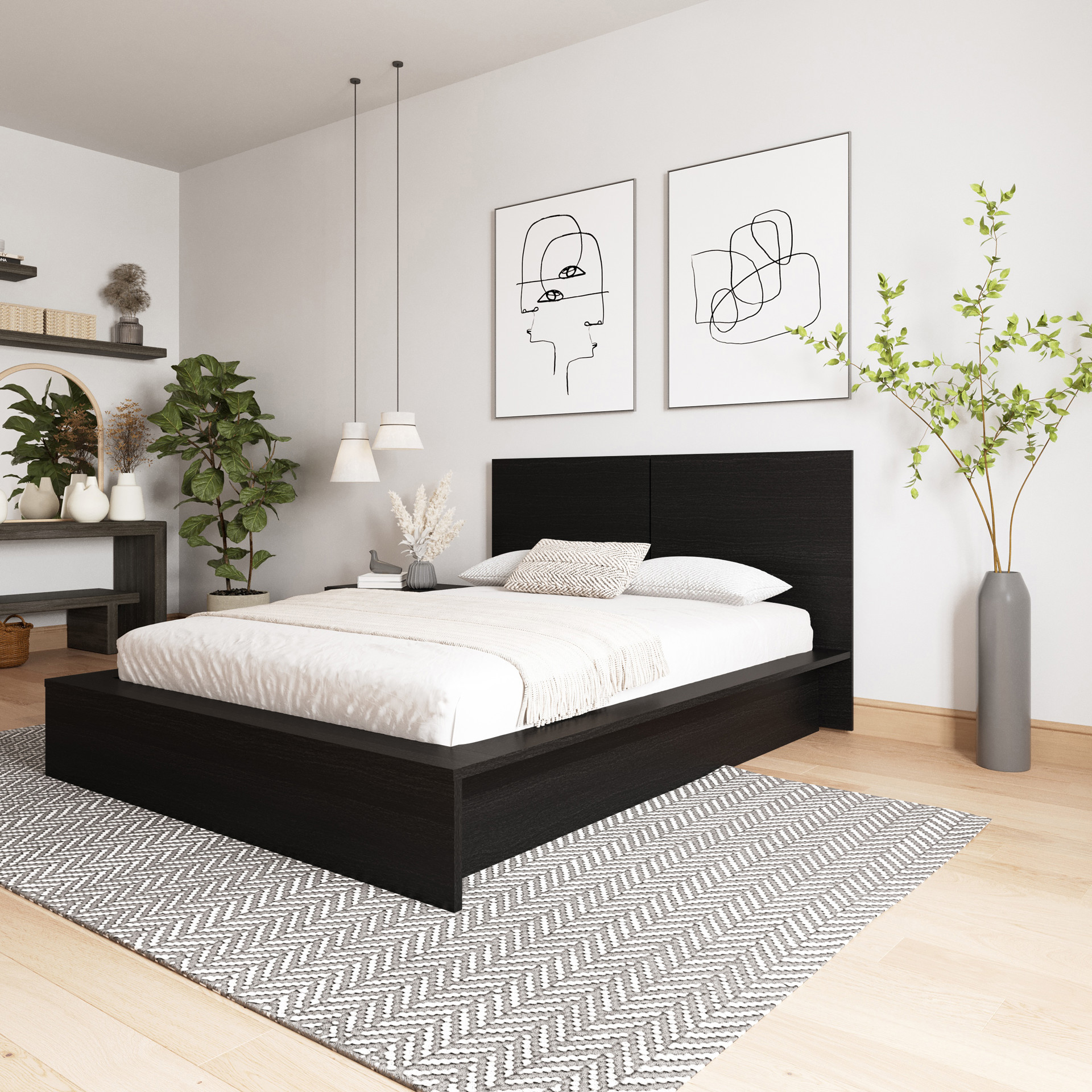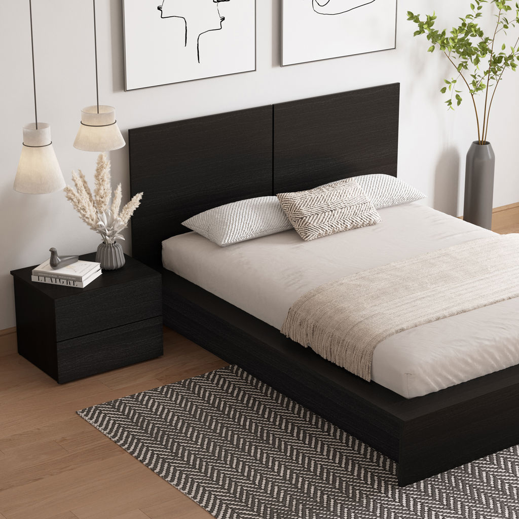 Ce lit plateforme est compatible avec votre matelas préféré (vendu séparément), éliminant le besoin d'un sommier grâce à des supports centraux fiables. L'assemblage de votre lit plateforme avec tête de lit et table de chevet est facile, ne nécessitant qu'un tournevis.