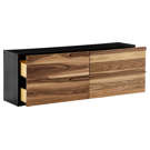 Le contraste saisissant entre le noir profond et les tons naturels du bois crée une pièce distinctive qui s'intègre harmonieusement à tout intérieur. Les poignées affleurantes ajoutent une touche de raffinement discret, tandis que la surface supérieure généreuse vous permet d'exposer vos objets décoratifs préférés.