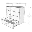 Ses larges tiroirs coulissants procurent un rangement généreux pour vêtements et accessoires. La construction robuste garantit une utilisation quotidienne pendant des années, tandis que l'entretien reste un jeu d'enfant.