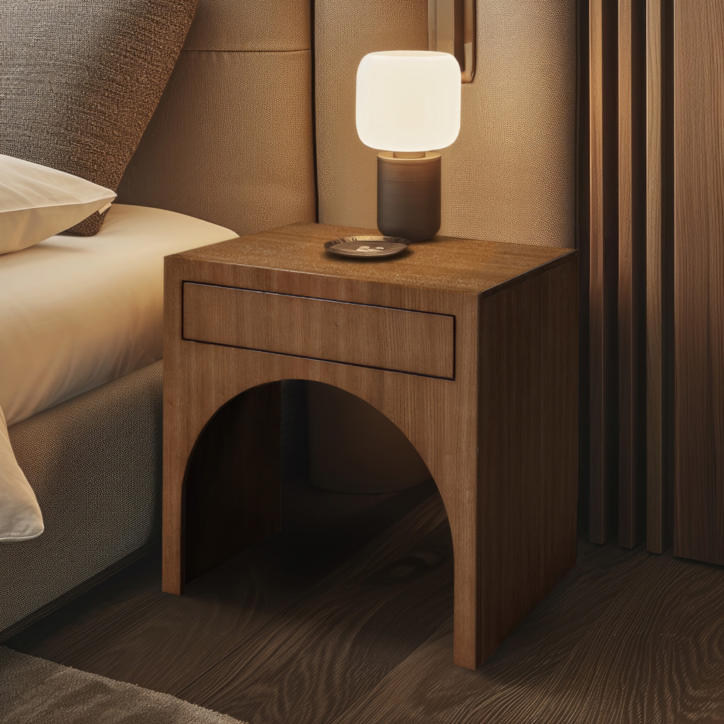 Construit avec un placage en bois de chêne, la table de nuit présente une riche finition en noyer qui ajoute une touche de sophistication à n'importe quelle pièce.