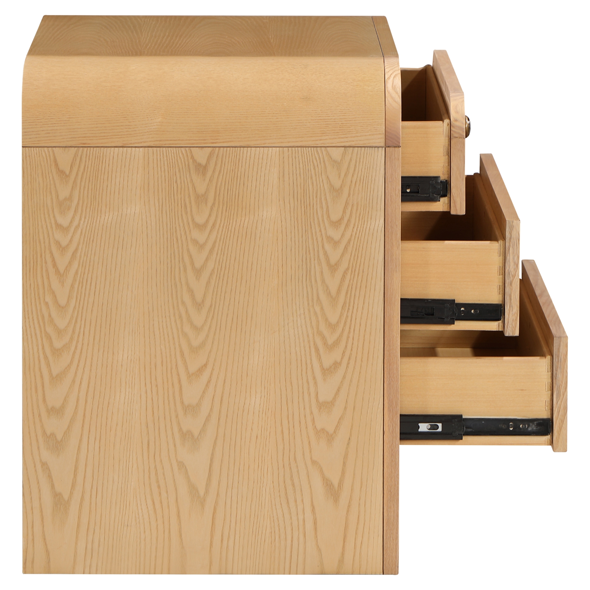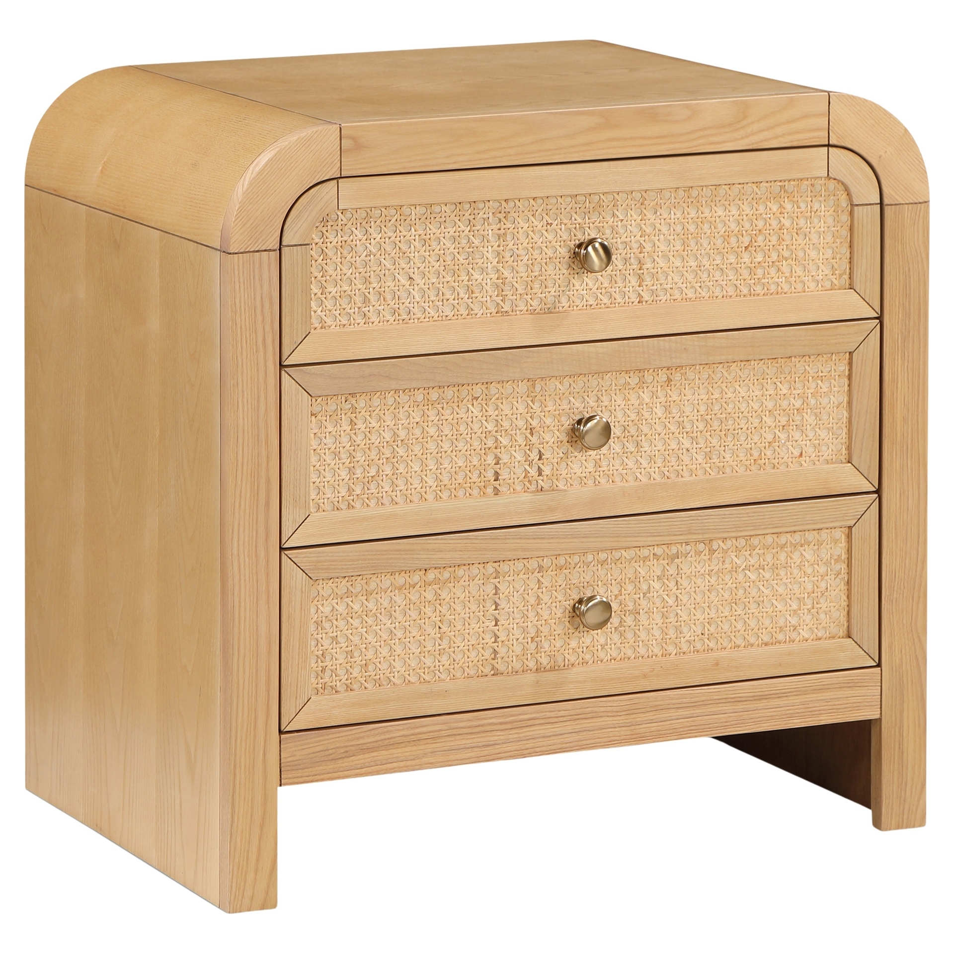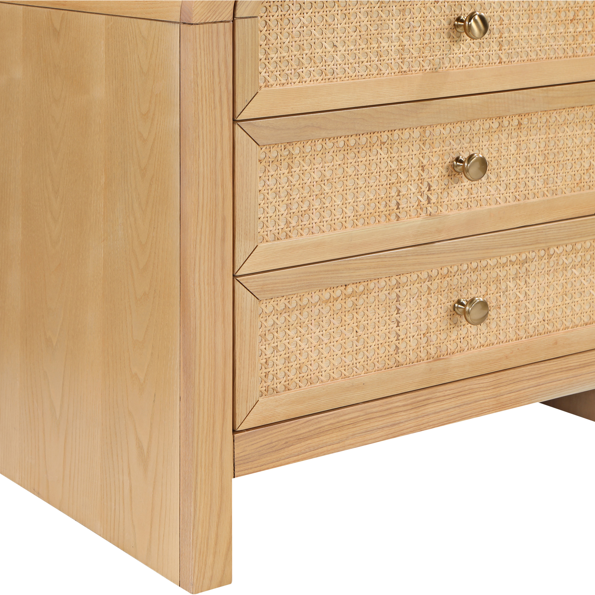 Les tiroirs de canne naturelle et la finale de placage de frêne naturel époustouflante créent un contraste frappant qui dégage le charme et la sophistication.