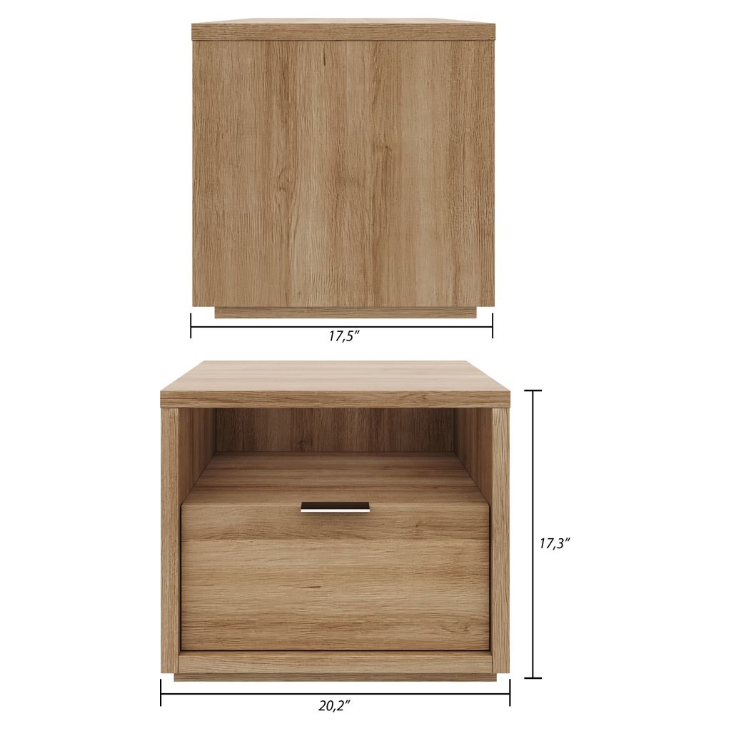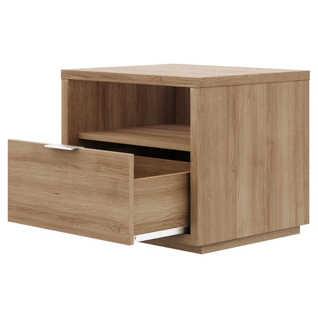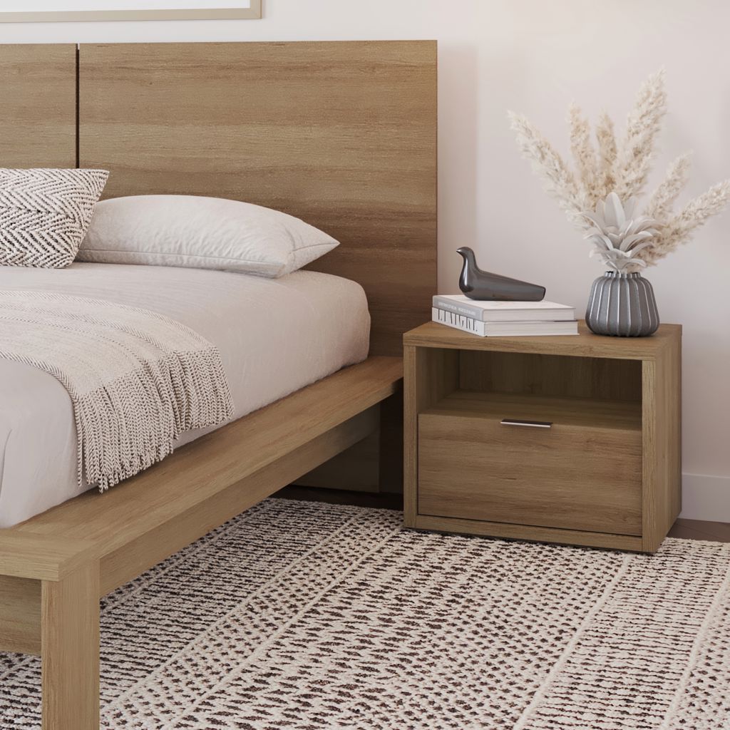 La riche finition en chêne brun naturel de la table de nuit donnera à votre chambre une ambiance scandinave tout en ajoutant un espace de rangement pratique.