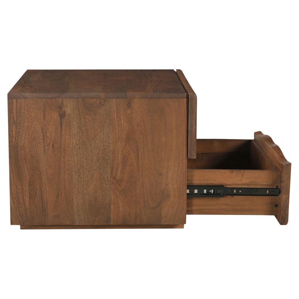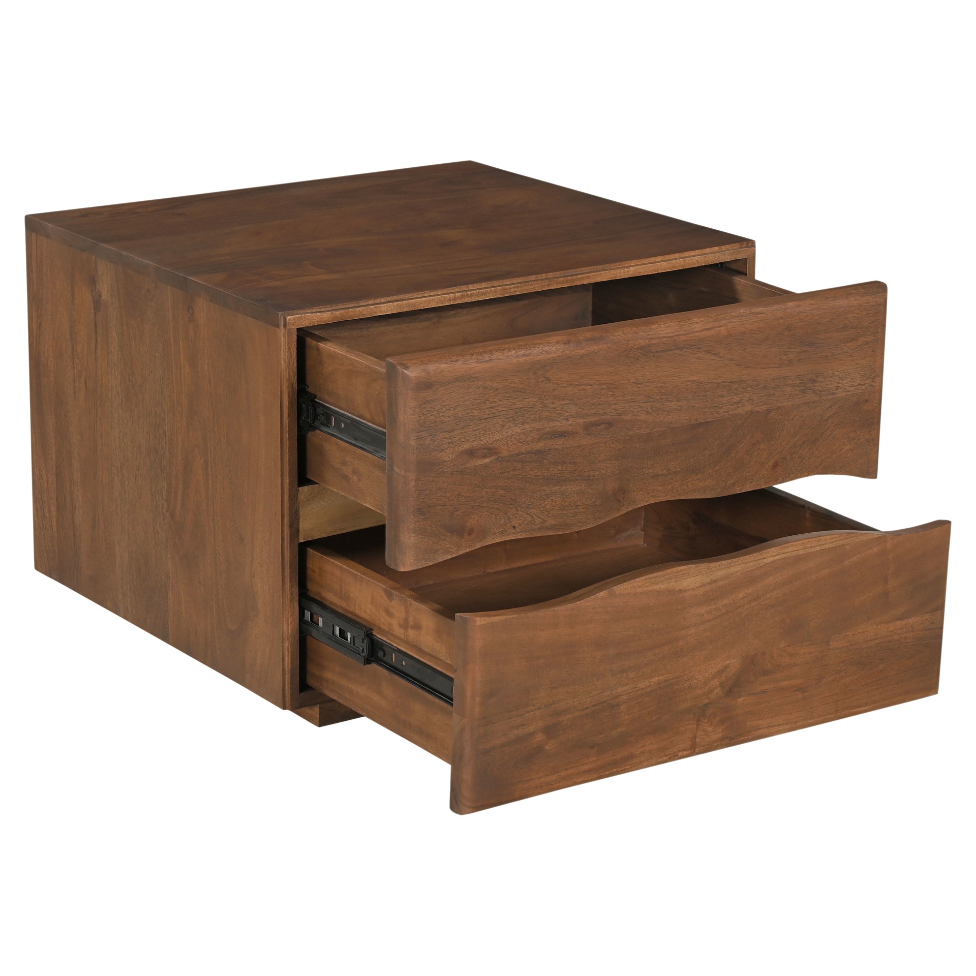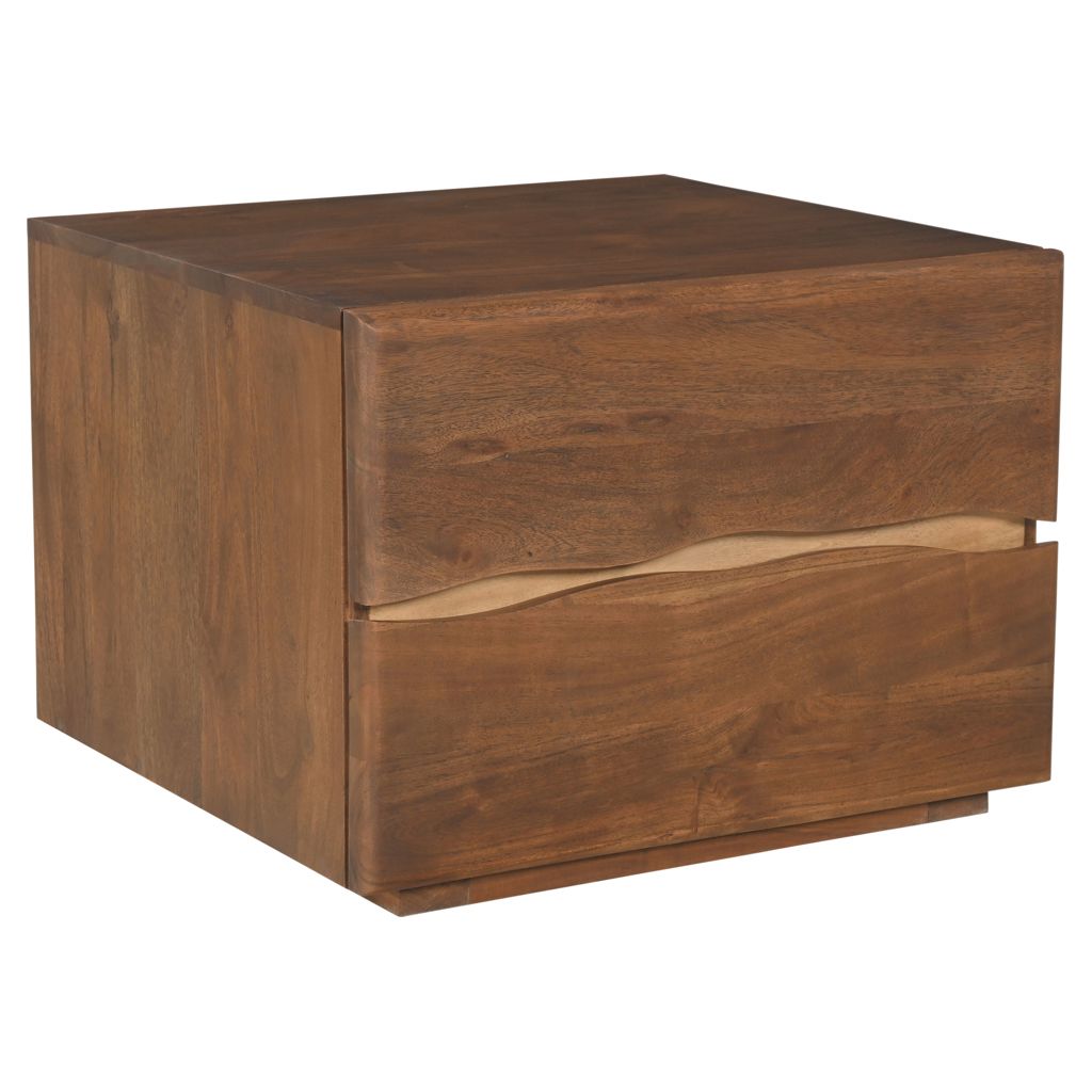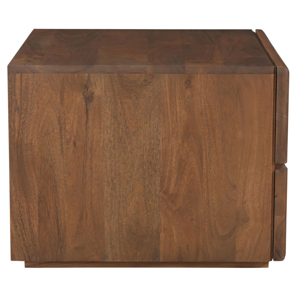 • Acacia massif avec finition noyer et dos en MDF fini.