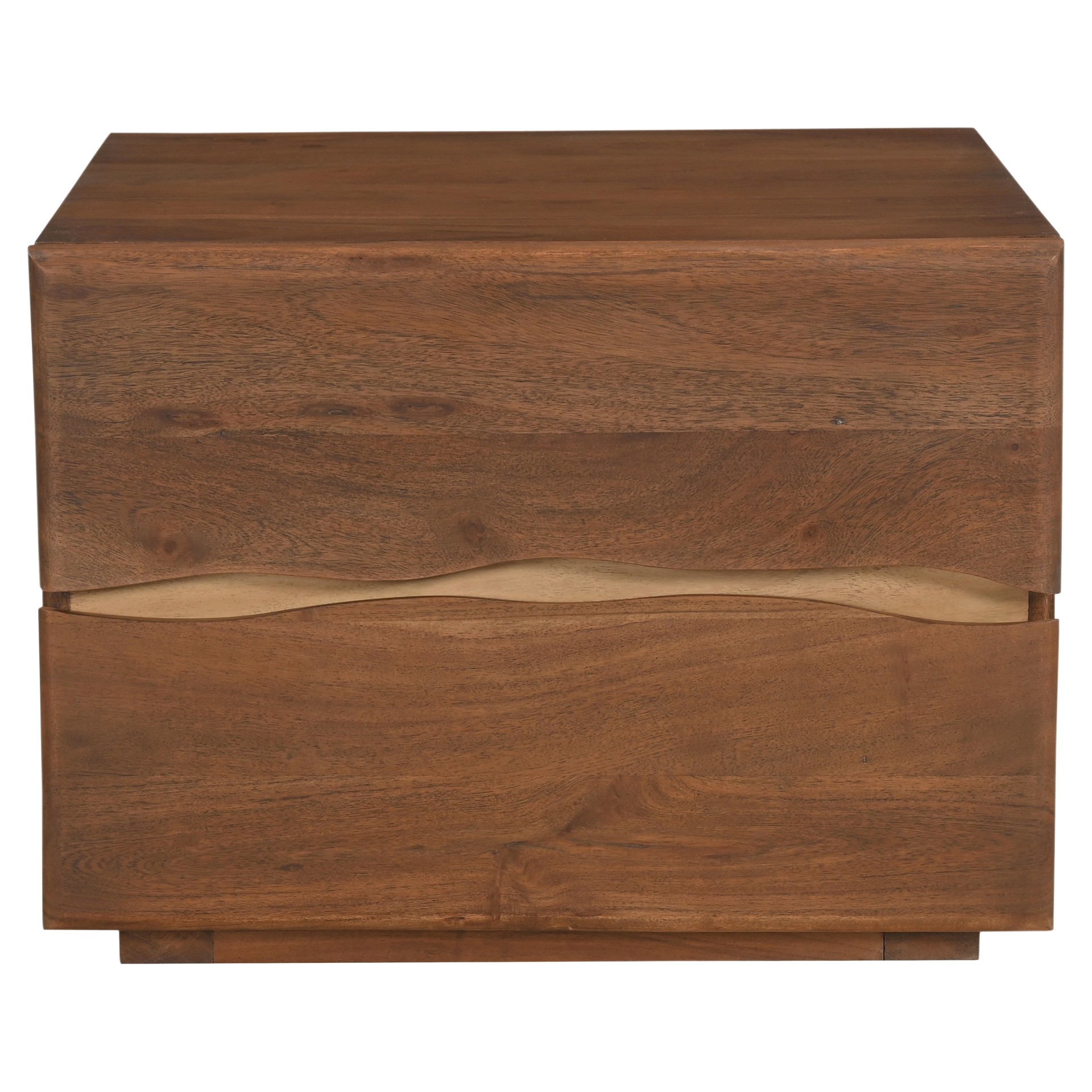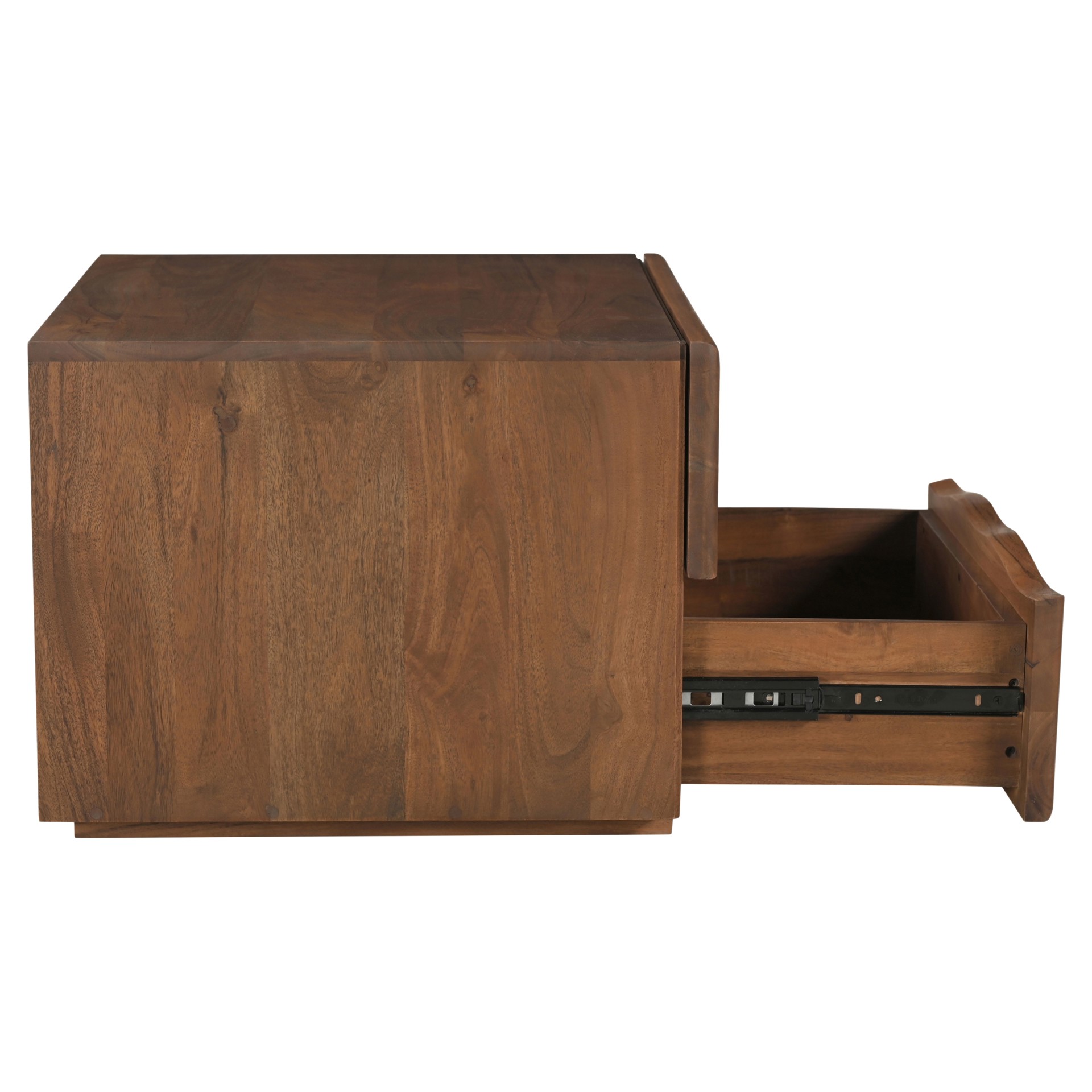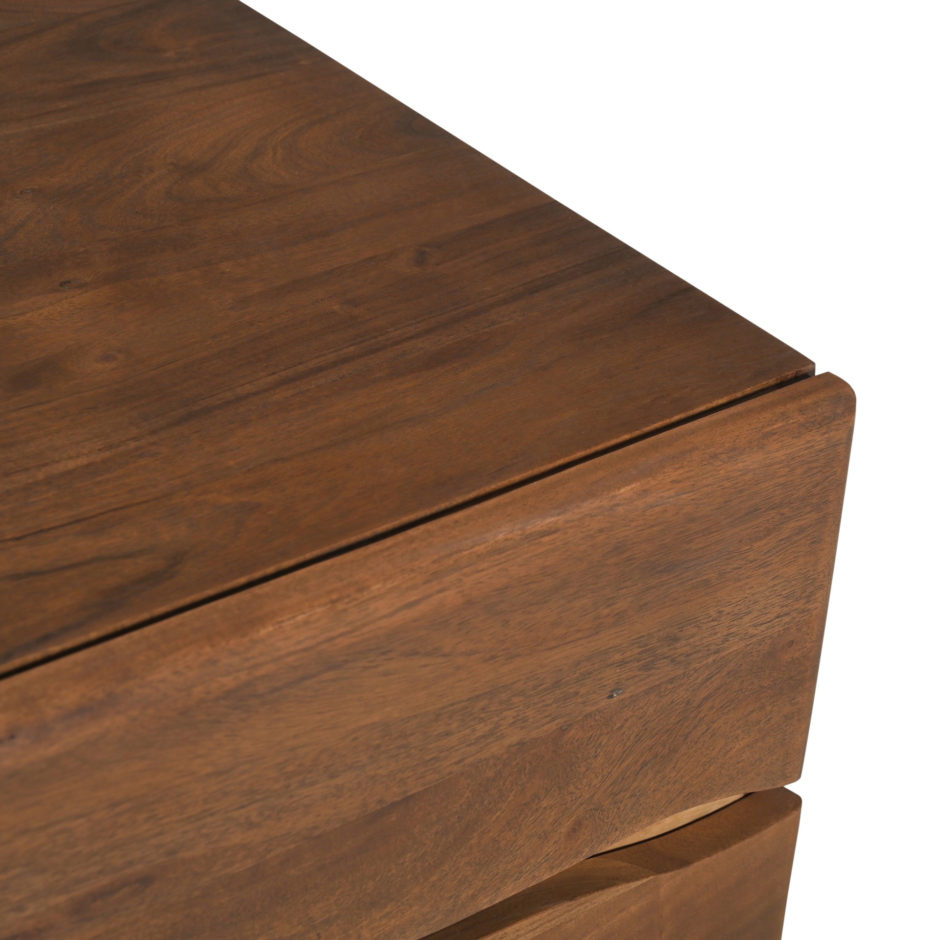 • Acacia massif avec finition noyer et dos en MDF fini.
