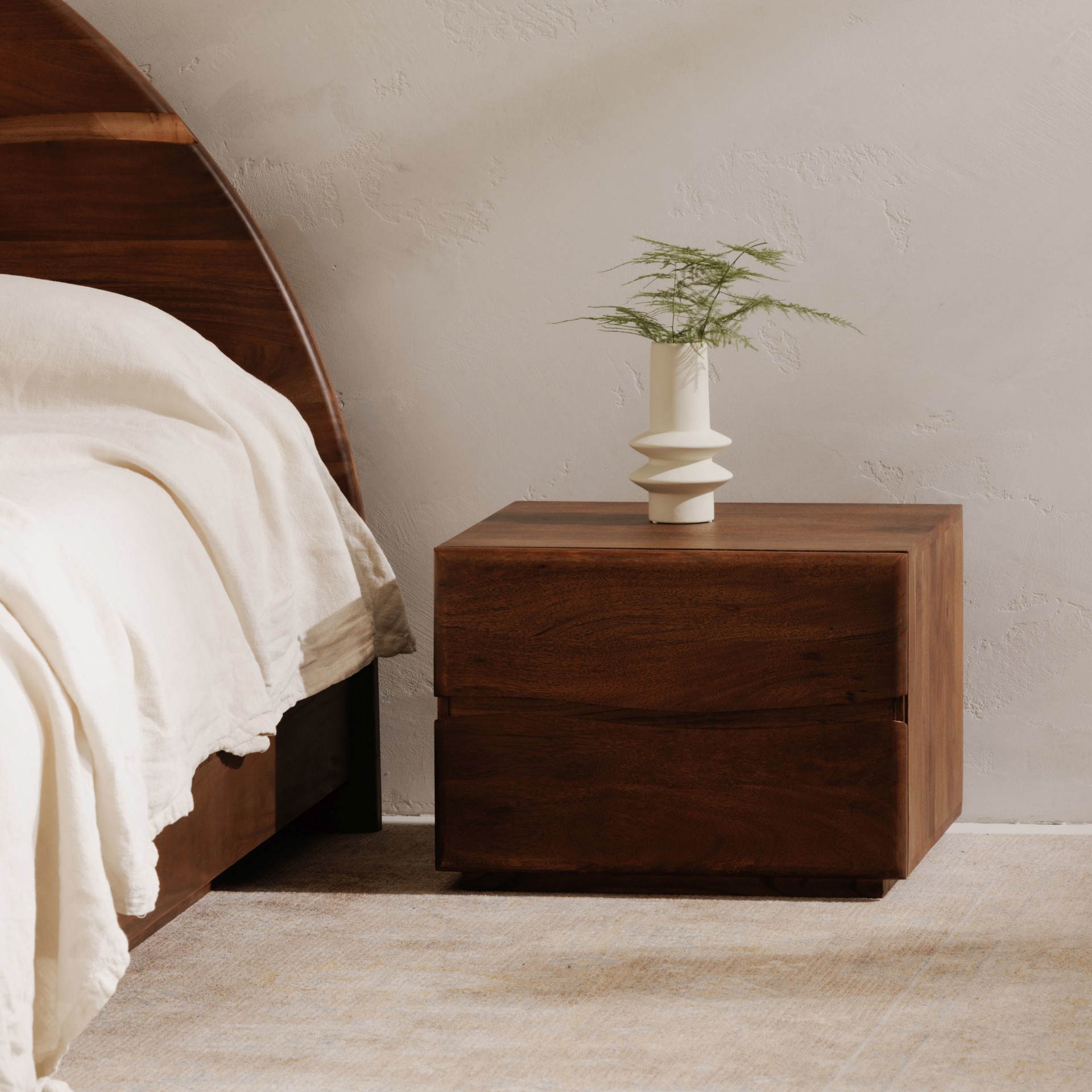 La table de chevet Watson est un mélange raffiné de charme organique et de sensibilité moderne.