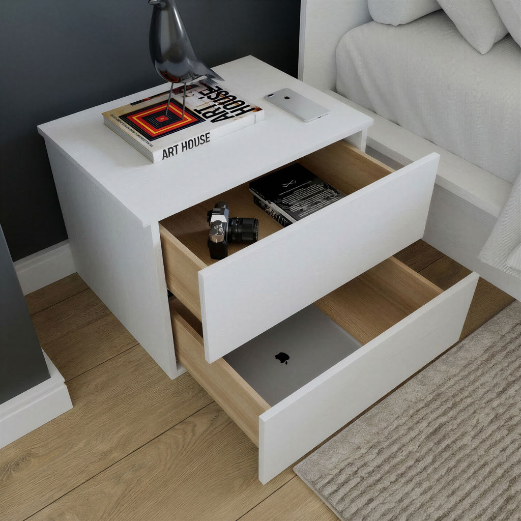 Cette table de nuit propose 2 tiroirs pratiques sur coulisses de métal afin de conserver vos livres, magazines et effets personnels à portée de main alors que vous êtes au lit.