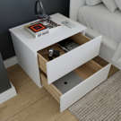 Le riche fini blanc de la table de nuit donne une ambiance sophistiquée à votre chambre tout en y ajoutant du rangement pratique.