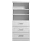 Cette unité comprend 2 tablettes fixes, 3 tablettes ajustables, 2 tringles et 3 tiroirs pour vous aider à garder vos vêtements et vos accessoires en ordre.