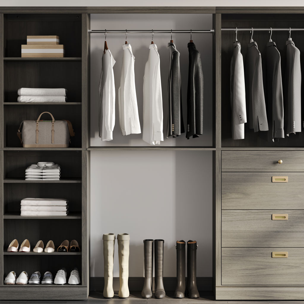 Combinez plusieurs composants de la gamme de systèmes de placards Nolan afin de maximiser votre espace et d'améliorer sa fonctionnalité.