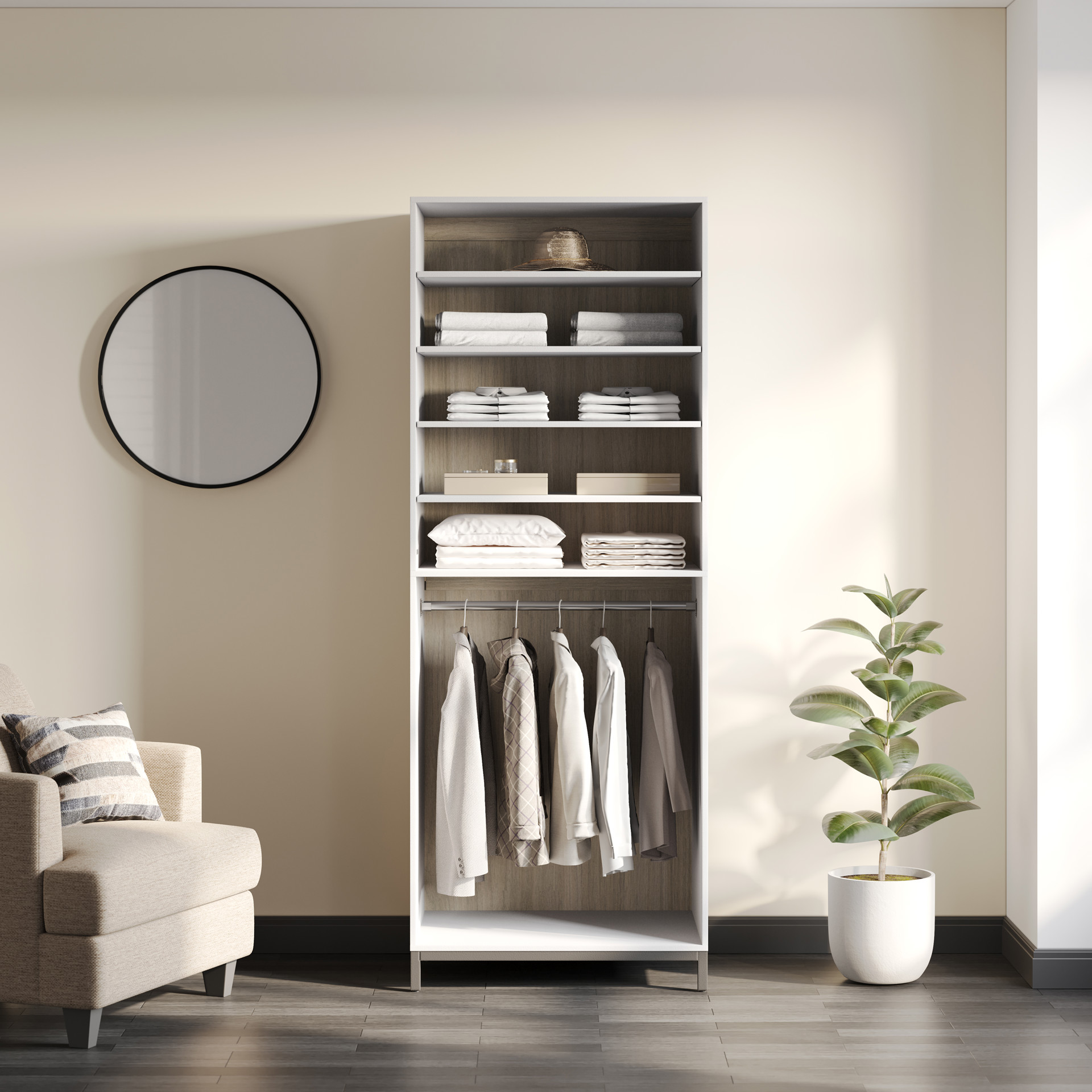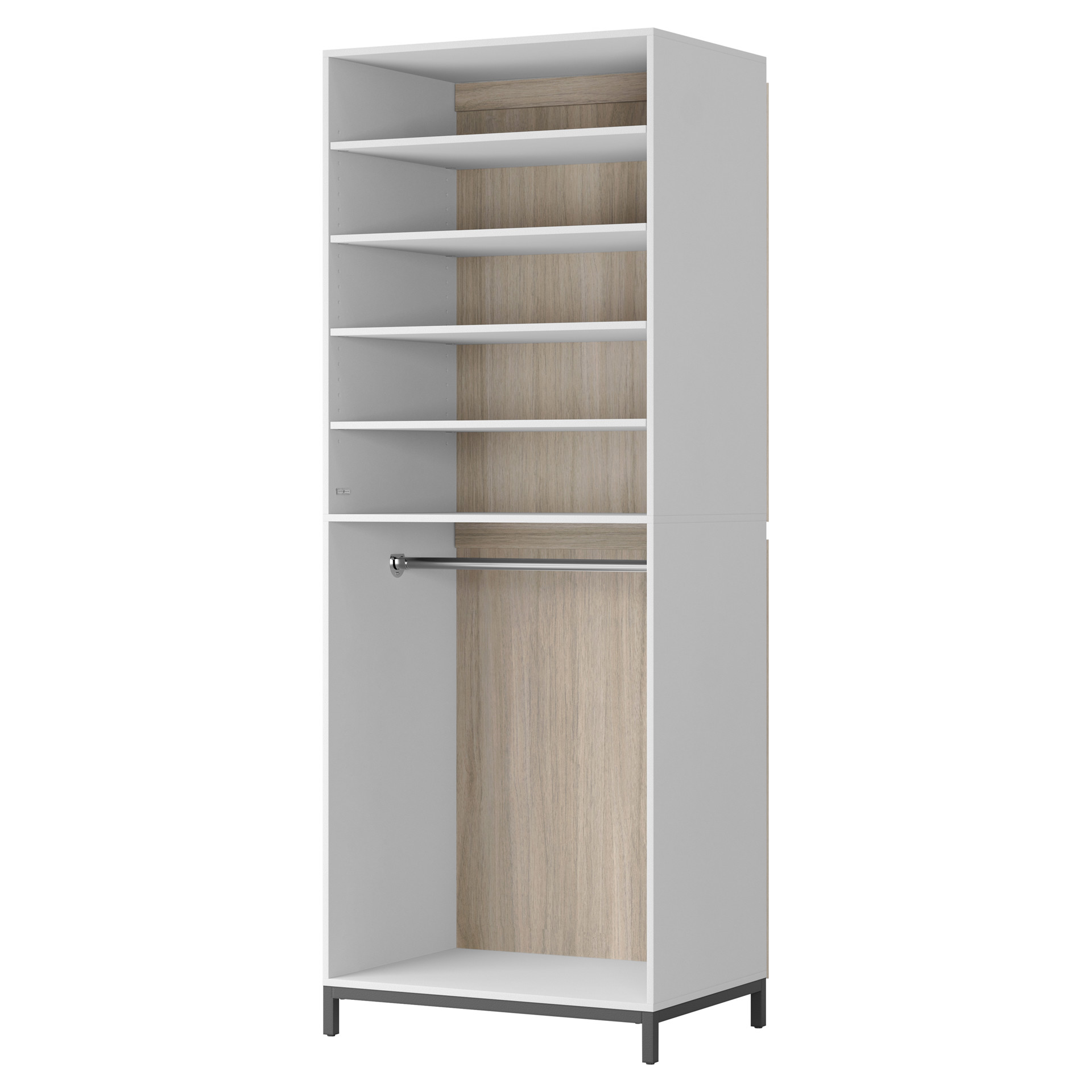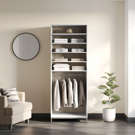 Les étagères réglables vous permettent de sélectionner la hauteur nécessaire pour pouvoir ranger bottes ou chemises, sacs à main ou pulls. La partie suspendue vous permet d'accéder facilement aux articles qui nécessitent des cintres, tels que des manteaux ou des jupes. Ajoutez de l'élégance et de l'organisation à n'importe quel espace de placard avec ce composant de placard Scott Living Legault. Augmentez facilement votre capacité de rangement en combinant cette pièce avec d'autres articles de la collection Legault.