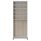 Sa finition gris clair et son support en panneaux de noyer s'adaptent à n'importe quel design de pièce, grâce à leur nature neutre. La pièce est fabriquée à partir de bois composite et métal pour que vous puissiez compter sur sa durée de vie. Divisé en deux espaces d'armoires, la pièce est dotée d'étagères dans une partie et d'un poteau dans l'autre.