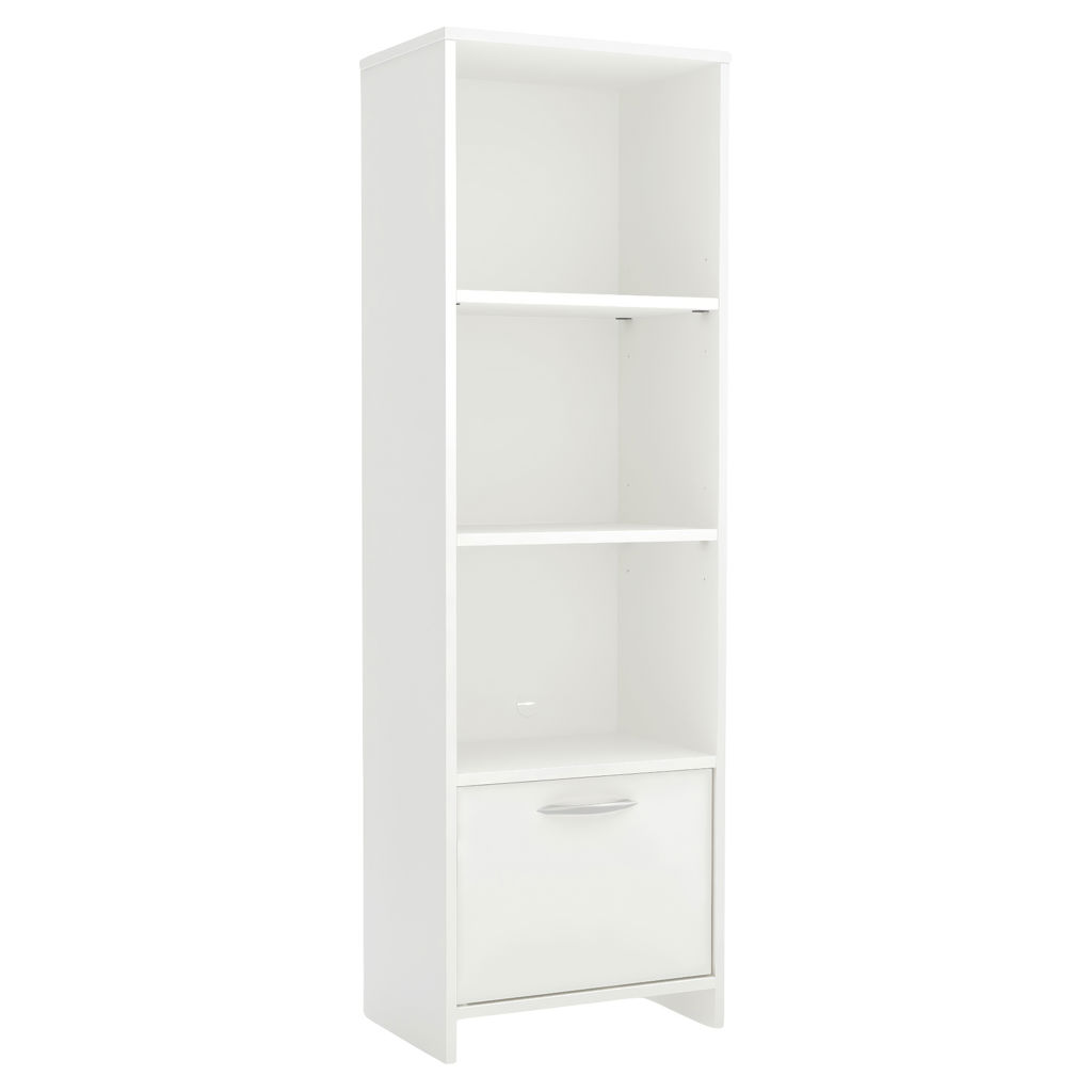 Ajoutez du rangement à votre pièce sans l´encombrer avec cette bibliothèque étroite et toute en hauteur. Comme elle est très mince, elle prendra peu d´espace sur votre plancher. Grâce aux trois espaces de rangement ouverts, qui sont séparés par deux tablettes ajustables, ainsi qu´à l´espace de rangement fermé au bas, c´est fini les pièces désorganisées! Vous pourrez garder des items à portée de main, comme vos livres de recettes, dictionnaires ou encyclopédies ou mettre en valeur quelques items déco. D´ailleurs, chaque tablette peut supporter un poids de 25 lb : elles sont très solides.