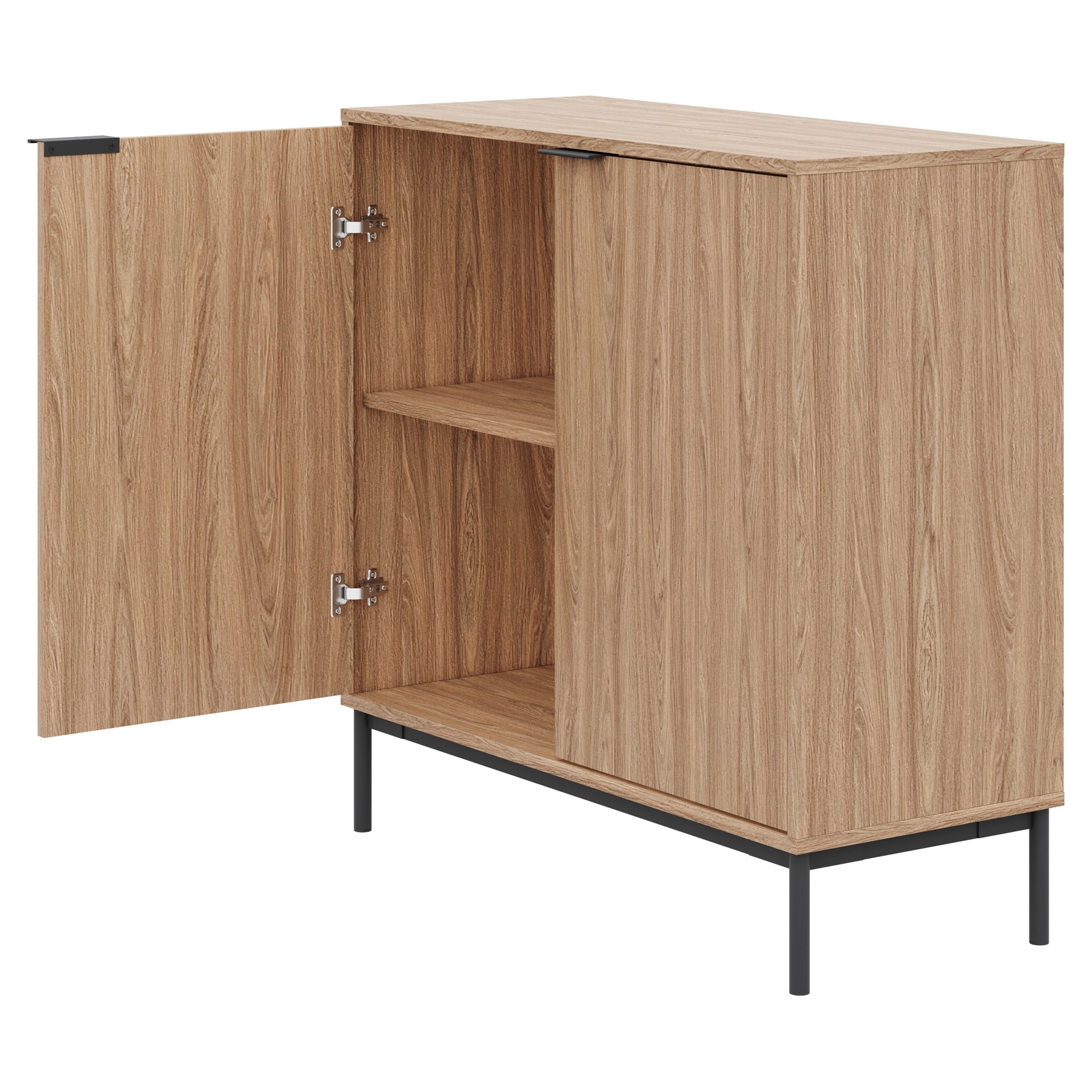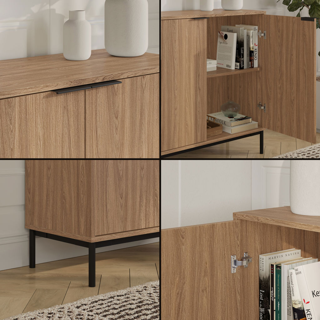 Derrière les portes à fermeture douce, deux tablettes permettent de ranger vos essentiels du quotidien, à l'abri des regards.