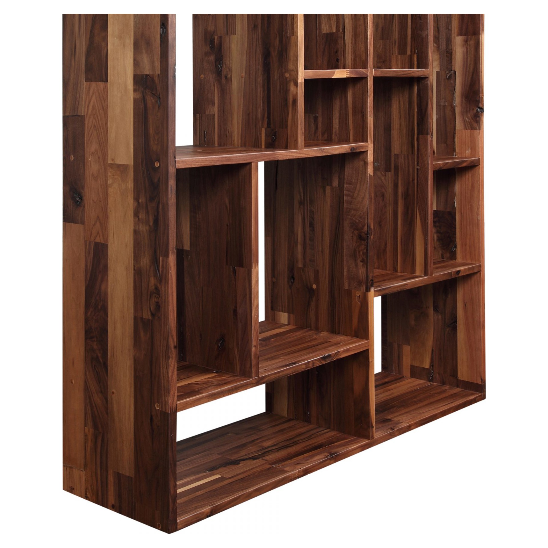 Ces étagères sont fabriquées à partir de nombreux petits morceaux de bois dur qui, autrement, finiraient par être gaspillés. Au lieu de cela, nous les avons minutieusement réunis pour créer ces unités d'affichage magistrales. Noyer massif.