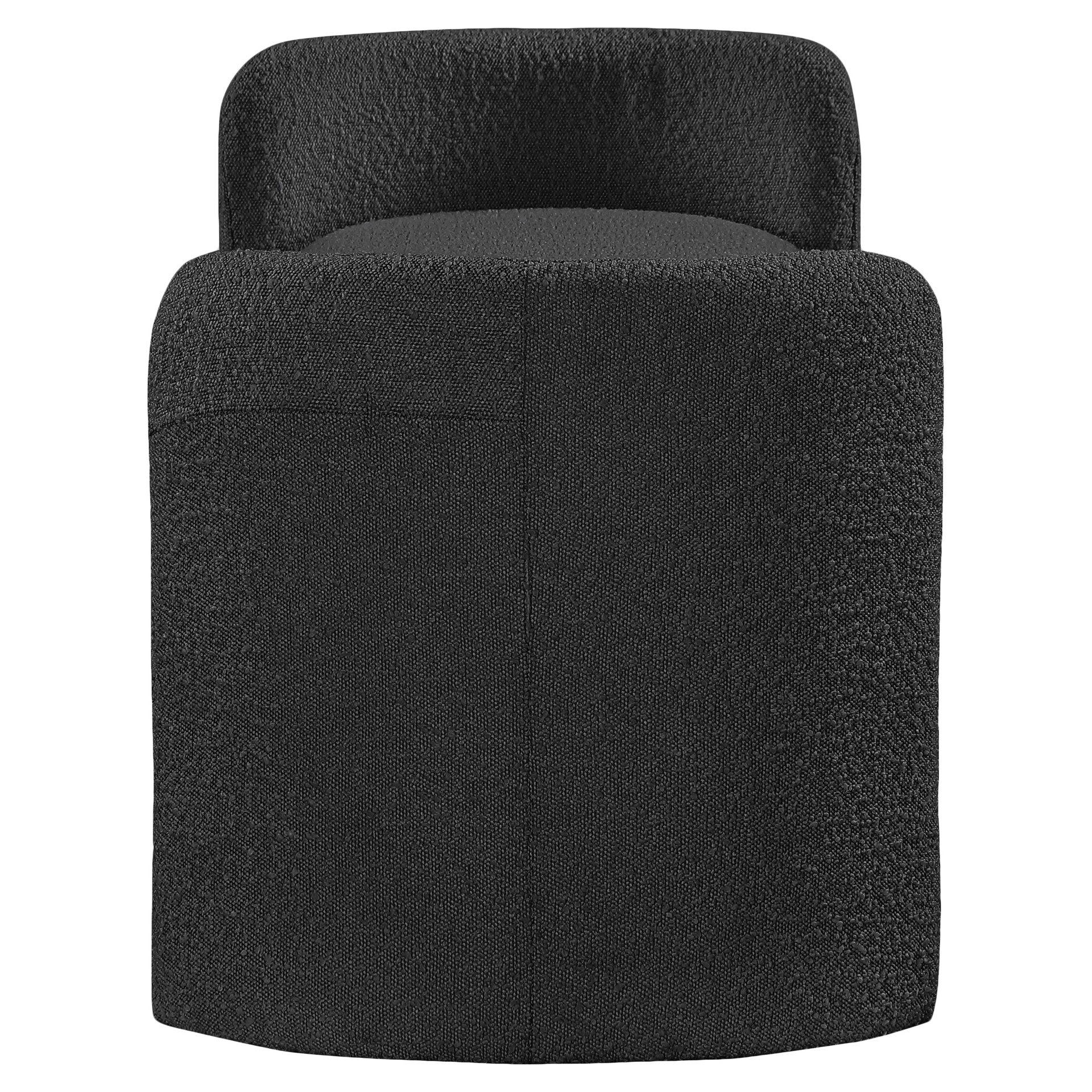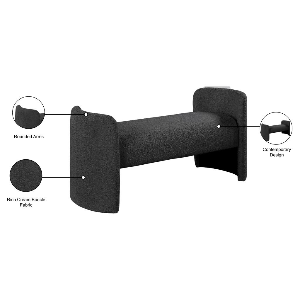 Placez ce banc en tissu Peyton Boucle partout où vous avez besoin d'un siège supplémentaire et d'un élément élégant et chic ajouté à votre pièce. Ce joli banc est exactement ce qu'il faut placer au bout d'un lit ou dans un vestibule ou une entrée pour offrir un endroit où s'asseoir tout en enfilant des chaussures ou en enfilant des bottes. Les accoudoirs arrondis et le style sobre confèrent à ce banc un air de panache contemporain, tandis que le riche tissu bouclé noir lui permet de s'harmoniser facilement avec la palette de couleurs de votre pièce.