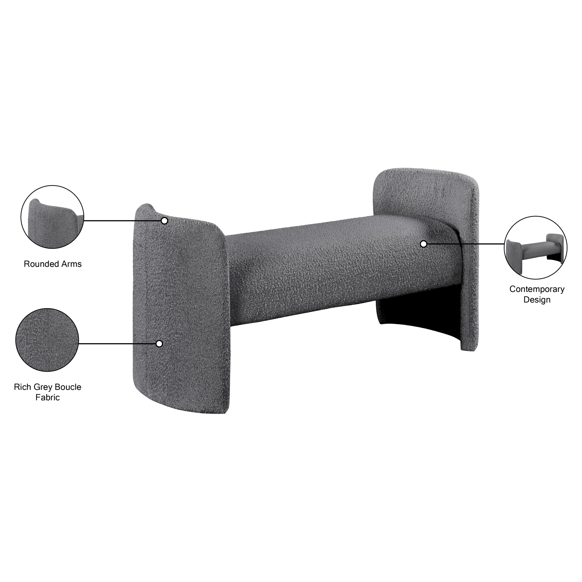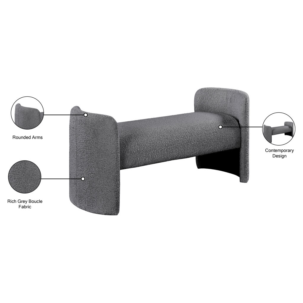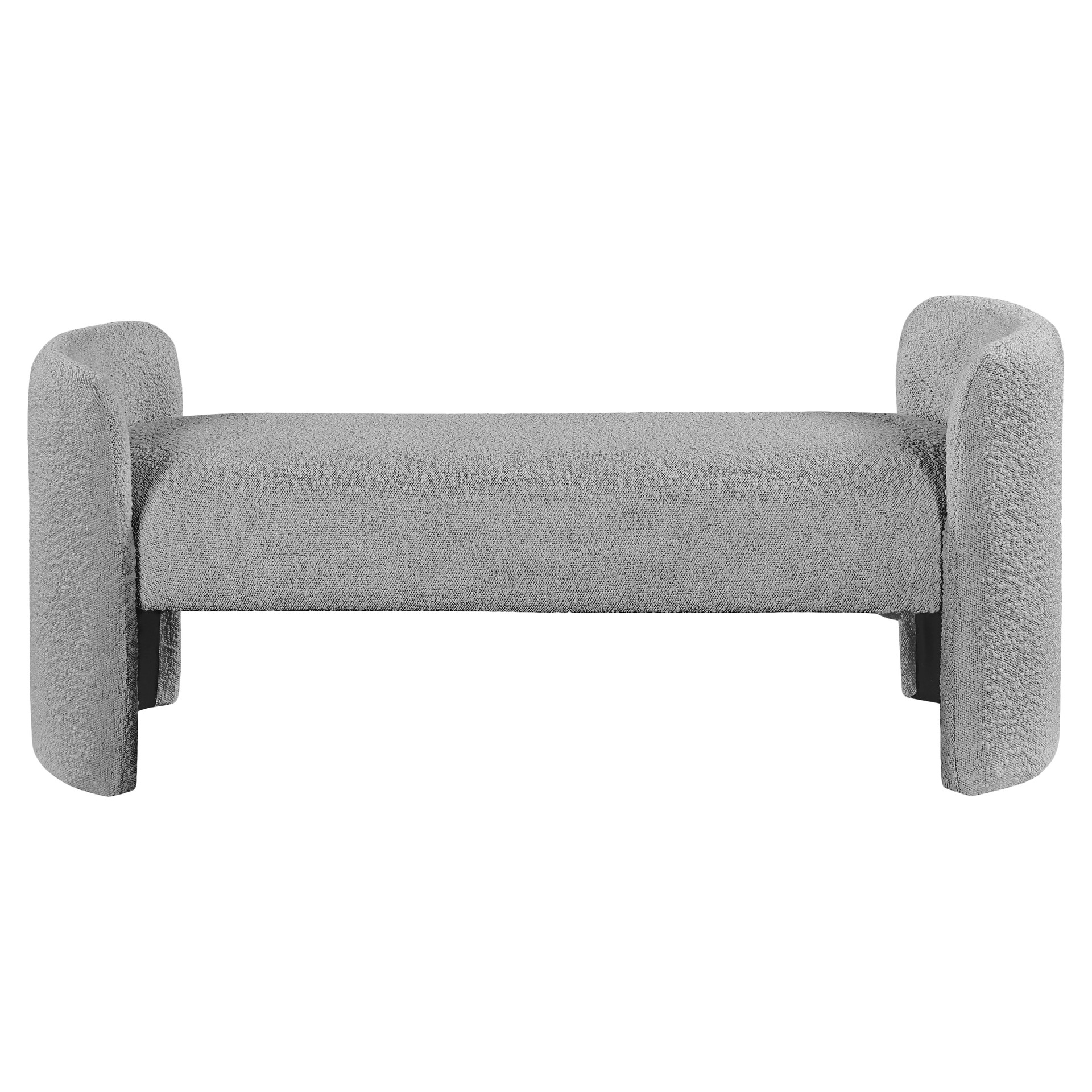 Placez ce banc en tissu Peyton Boucle partout où vous avez besoin d'un siège supplémentaire et d'un élément élégant et chic ajouté à votre pièce. Ce joli banc est exactement ce qu'il faut placer au bout d'un lit ou dans un vestibule ou une entrée pour offrir un endroit où s'asseoir tout en enfilant des chaussures ou en enfilant des bottes. Les accoudoirs arrondis et le style sobre confèrent à ce banc un air de panache contemporain, tandis que le riche tissu bouclé gris lui permet de s'harmoniser facilement avec la palette de couleurs de votre pièce.