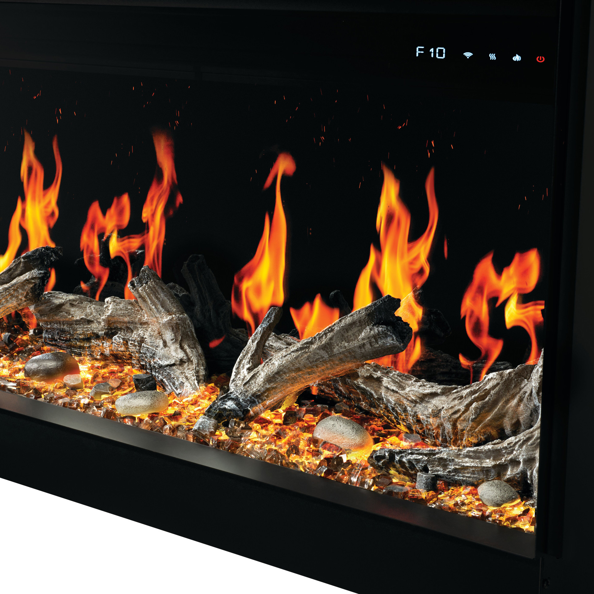 Au-delà du simple attrait visuel, les haut-parleurs intégrés fournissent à chaque flamme son propre son unique, créant une expérience vraiment immersive. Le support Woodland et l'ensemble de bûches Beach Fire inclus augmentent l'élégance réaliste de ce foyer. Avec 6 couleurs de flamme, 13 options de couleur de lit de braises et de lumière supérieure, vous avez des possibilités infinies pour créer l'ambiance parfaite.