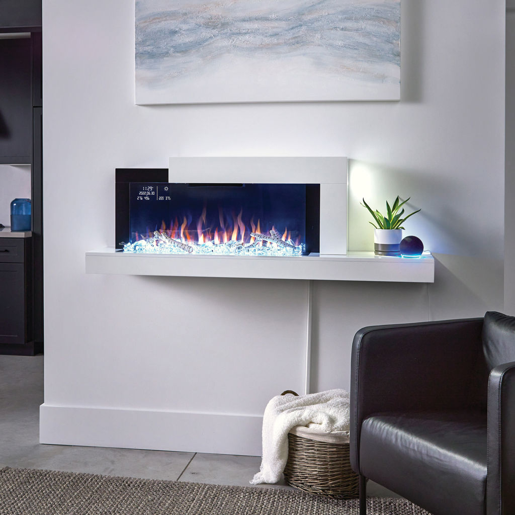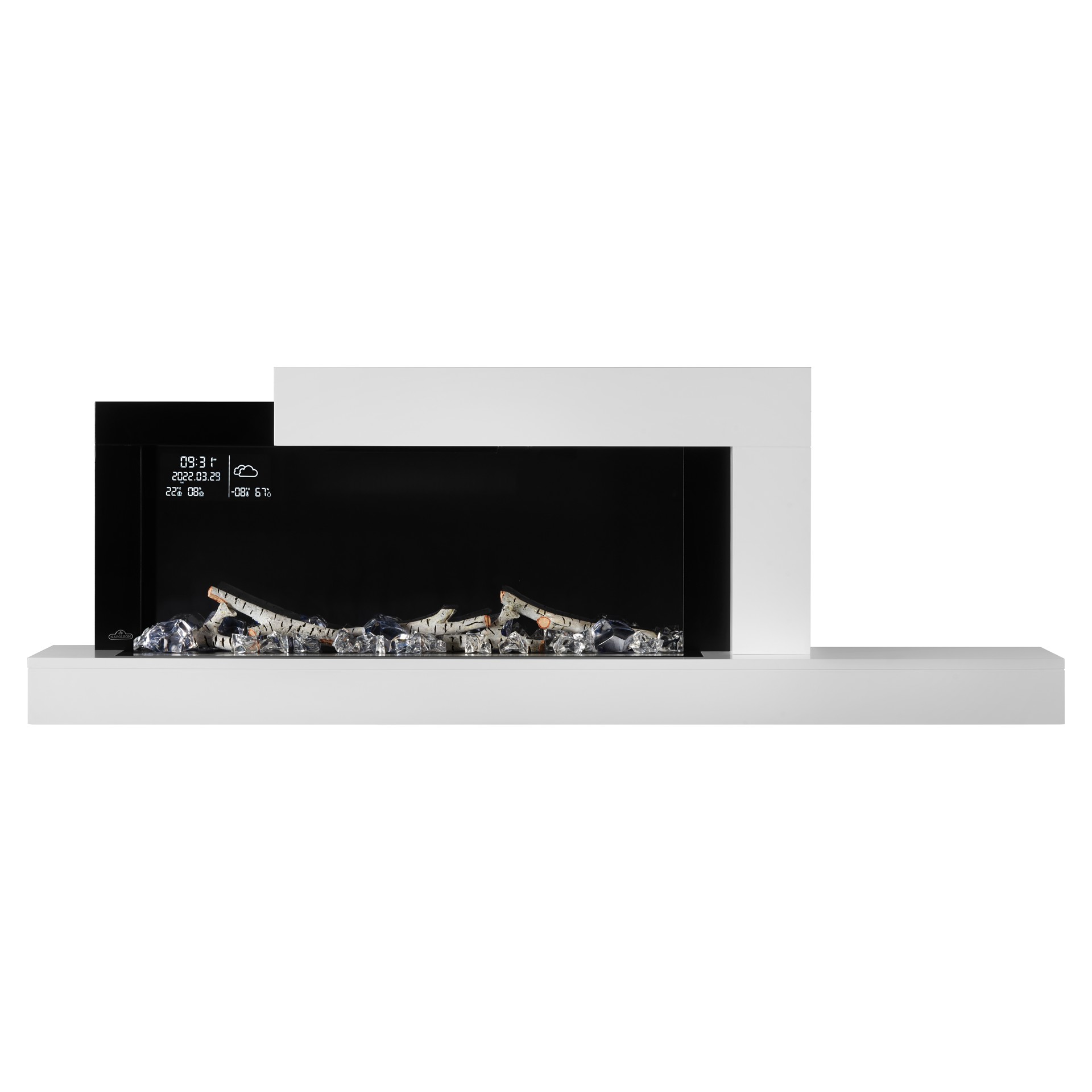 L'apparence du foyer est encore améliorée par le verre teinté foncé de qualité supérieure pour mettre en valeur la flamme, ainsi que par l'ensemble de bûches de bouleau et les cristaux inclus.